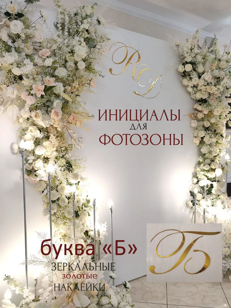 Наклейки буквы инициалы на свадьбу из зеркального золота – отличное решение для украшения Вашей фотозоны и фона за столом молодоженов. Они добавят индивидуальности, изысканности и блеска Вашему мероприятию, придавая ему особую изюминку. Эти наклейки идеально подходят для нанесения на банерную ткань, ПВХ потолок, ПВХ пластик, акрил, оргстекло. Благодаря специальной клеевой основе они легко фиксируются на поверхности. Идеальный выбор для свадебных торжеств. В наборе 1 буква. Размеры наклеек отлично подходят под стандартные размеры свадебных фотозон и фонов. В карточках товаров магазина можно выбрать любые инициалы алфавита. Осторожно отделите прозрачную с наклейкой от белой подложки чтобы все элементы остались на прозрачной пленке. Нанесите наклейку на выбранное место, аккуратно разгладьте. Удалите прозрачную пленку.