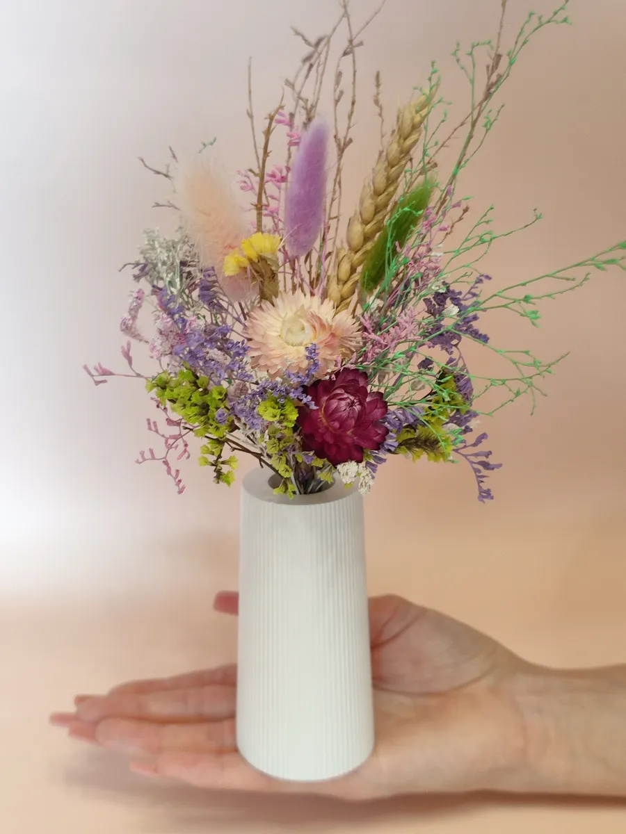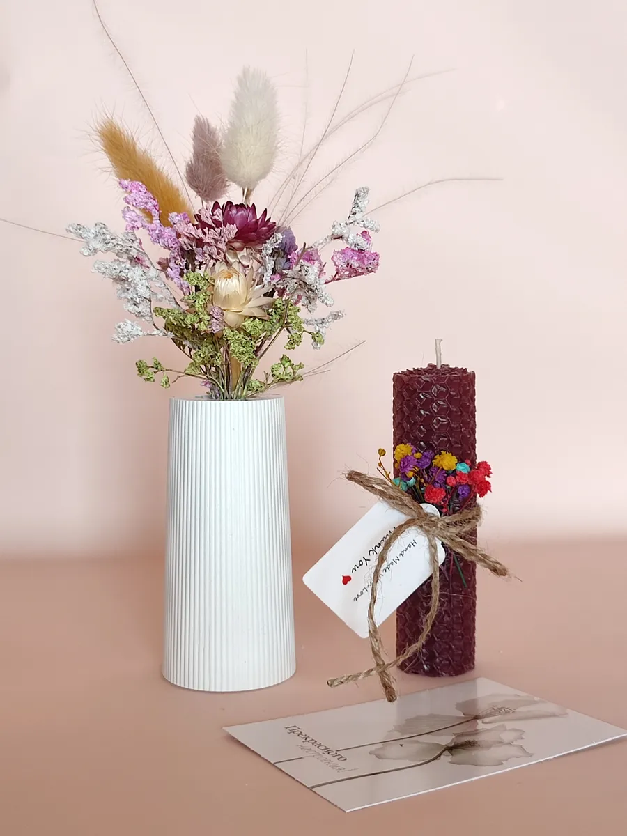 Идеально подходит для размещения сухоцветов, подчеркивая их естественную красоту. Такая композиция будет радовать глаз и создавать настроение комфорта.