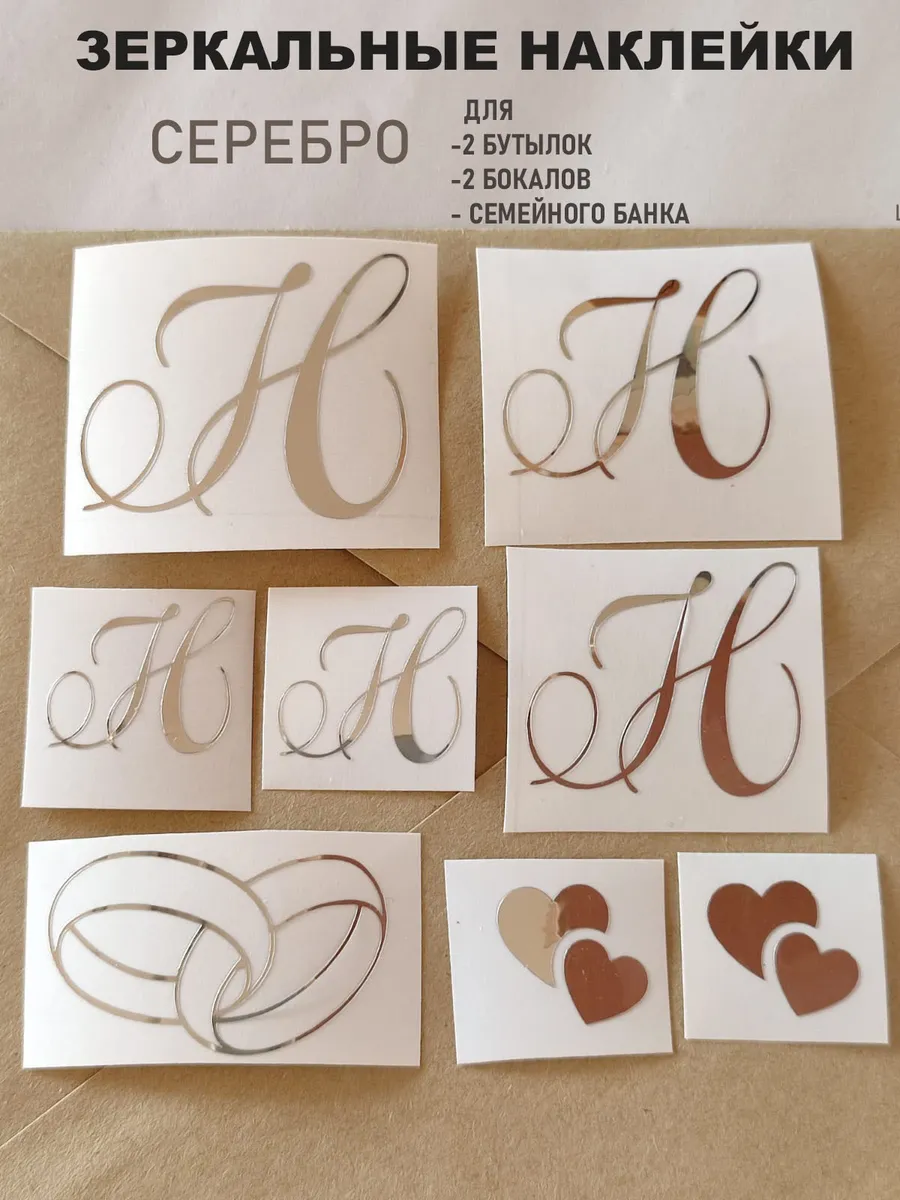 Наклейки свадебные буквы из зеркального серебра инициалы – отличный выбор для украшения бутылок и бокалов? Они добавят изысканности и блеска Вашему мероприятию, придавая ему особую изюминку. Эти наклейки идеально подходят для нанесения на любые бутылки и свадебные фужеры с гладкой поверхностью. Благодаря специальной клеевой основе они легко фиксируются на поверхности. Вы сможете их использовать не только для стеклянной посуды, но и для окрашенных поверхностей, создавая уникальные декорации. Идеальный выбор для свадебных торжеств. Эти декоративные элементы помогут создать особую атмосферу романтики и подчеркнет статус торжества. В наборе 8 штук наклеек, инициалы для свадебной казны, бутылок, фужеров, а также наклейка колец и сердец. Размеры наклеек отлично подходят под стандартные размеры свадебных аксессуаров, благодаря этому вы сможете создать гармоничный и стильный дизайн, соответствующий атмосфере и особенностям Вашего мероприятия. В карточках товаров магазина можно выбрать любые инициалы алфавита. Очистите бутылки от этикеток. Осторожно отделите прозрачную с наклейкой от белой подложки чтобы все элементы остались на прозрачной пленке. Нанесите наклейку на выбранное место, аккуратно разгладьте. Удалите прозрачную пленку. свадебные наклейки на бутылки; наклейки на бокалы; наклейки на шампанское свадебное; шаблоны свадебных наклеек; свадебные наклейки купить; наклейки на свадебные бокалы; наклейки на свадебные бутылки; свадебные наклейки на бутылки шампанского;