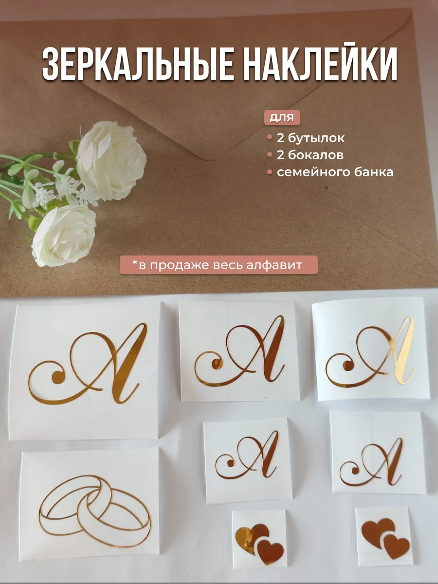 Почему наклейки из зеркального золота инициалы – отличный выбор для украшения бутылок и бокалов? Они добавят изысканности и блеска Вашему мероприятию, придавая ему особую изюминку. Эти наклейки идеально подходят для нанесения на любые бутылки и свадебные фужеры с гладкой поверхностью. Благодаря специальной клеевой основе они легко фиксируются на поверхности. Вы сможете их использовать не только для стеклянной посуды, но и для окрашенных поверхностей, создавая уникальные декорации. Идеальный выбор для свадебных торжеств. Эти декоративные элементы помогут создать особую атмосферу романтики и подчеркнет статус торжества. В наборе 8 штук наклеек, инициалы для свадебной казны, бутылок, фужеров, а также наклейка колец и сердец. Размеры наклеек отлично подходят под стандартные размеры свадебных аксессуаров, благодаря этому вы сможете создать гармоничный и стильный дизайн, соответствующий атмосфере и особенностям Вашего мероприятия. В карточках товаров магазина можно выбрать любые инициалы алфавита. Очистите бутылки от этикеток. Осторожно отделите прозрачную с наклейкой от белой подложки чтобы все элементы остались на прозрачной пленке. Нанесите наклейку на выбранное место, аккуратно разгладьте. Удалите прозрачную пленку. свадебные наклейки на бутылки; наклейки на бокалы; наклейки на шампанское свадебное; шаблоны свадебных наклеек; свадебные наклейки купить; наклейки на свадебные бокалы; наклейки на свадебные бутылки; свадебные наклейки на бутылки шампанского;