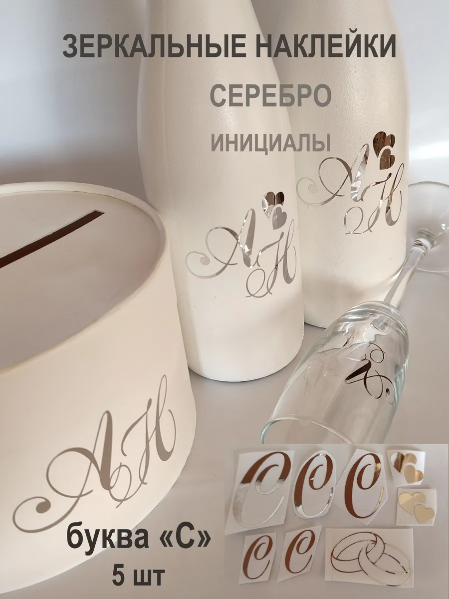 Наклейки свадебные буквы из зеркального серебра инициалы – отличный выбор для украшения бутылок и бокалов? Они добавят изысканности и блеска Вашему мероприятию, придавая ему особую изюминку. Эти наклейки идеально подходят для нанесения на любые бутылки и свадебные фужеры с гладкой поверхностью. Благодаря специальной клеевой основе они легко фиксируются на поверхности. Вы сможете их использовать не только для стеклянной посуды, но и для окрашенных поверхностей, создавая уникальные декорации. Идеальный выбор для свадебных торжеств. Эти декоративные элементы помогут создать особую атмосферу романтики и подчеркнет статус торжества. В наборе 8 штук наклеек, инициалы для свадебной казны, бутылок, фужеров, а также наклейка колец и сердец. Размеры наклеек отлично подходят под стандартные размеры свадебных аксессуаров, благодаря этому вы сможете создать гармоничный и стильный дизайн, соответствующий атмосфере и особенностям Вашего мероприятия. В карточках товаров магазина можно выбрать любые инициалы алфавита. Очистите бутылки от этикеток. Осторожно отделите прозрачную с наклейкой от белой подложки чтобы все элементы остались на прозрачной пленке. Нанесите наклейку на выбранное место, аккуратно разгладьте. Удалите прозрачную пленку. свадебные наклейки на бутылки; наклейки на бокалы; наклейки на шампанское свадебное; шаблоны свадебных наклеек; свадебные наклейки купить; наклейки на свадебные бокалы; наклейки на свадебные бутылки; свадебные наклейки на бутылки шампанского;