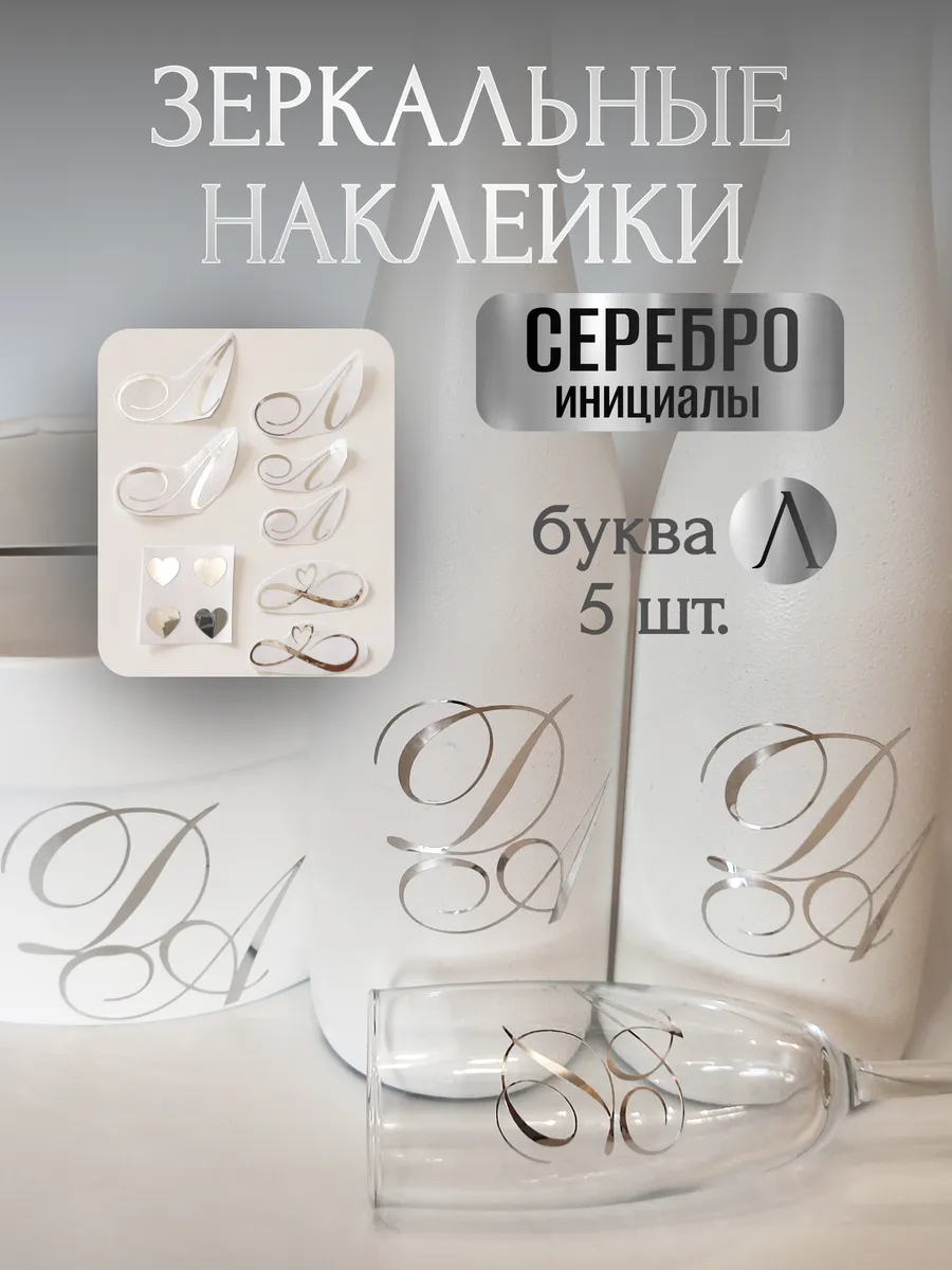 Почему наклейки из зеркального серебра инициалы – отличный выбор для украшения бутылок и бокалов? Они добавят изысканности и блеска Вашему мероприятию, придавая ему особую изюминку. Эти наклейки идеально подходят для нанесения на любые бутылки и свадебные фужеры с гладкой поверхностью. Благодаря специальной клеевой основе они легко фиксируются на поверхности. Вы сможете их использовать не только для стеклянной посуды, но и для окрашенных поверхностей, создавая уникальные декорации. Идеальный выбор для свадебных торжеств. Эти декоративные элементы помогут создать особую атмосферу романтики и подчеркнет статус торжества. В наборе 11 штук наклеек, инициалы для свадебной казны, бутылок, фужеров, а также наклейки бесконечности и сердец. Размеры наклеек отлично подходят под стандартные размеры свадебных аксессуаров, благодаря этому вы сможете создать гармоничный и стильный дизайн, соответствующий атмосфере и особенностям Вашего мероприятия. В карточках товаров магазина можно выбрать любые инициалы алфавита. Очистите бутылки от этикеток. Осторожно отделите прозрачную с наклейкой от белой подложки чтобы все элементы остались на прозрачной пленке. Нанесите наклейку на выбранное место, аккуратно разгладьте. Удалите прозрачную пленку. свадебные наклейки на бутылки; наклейки на бокалы; наклейки на шампанское свадебное; шаблоны свадебных наклеек; свадебные наклейки купить; наклейки на свадебные бокалы; наклейки на свадебные бутылки; свадебные наклейки на бутылки шампанского;