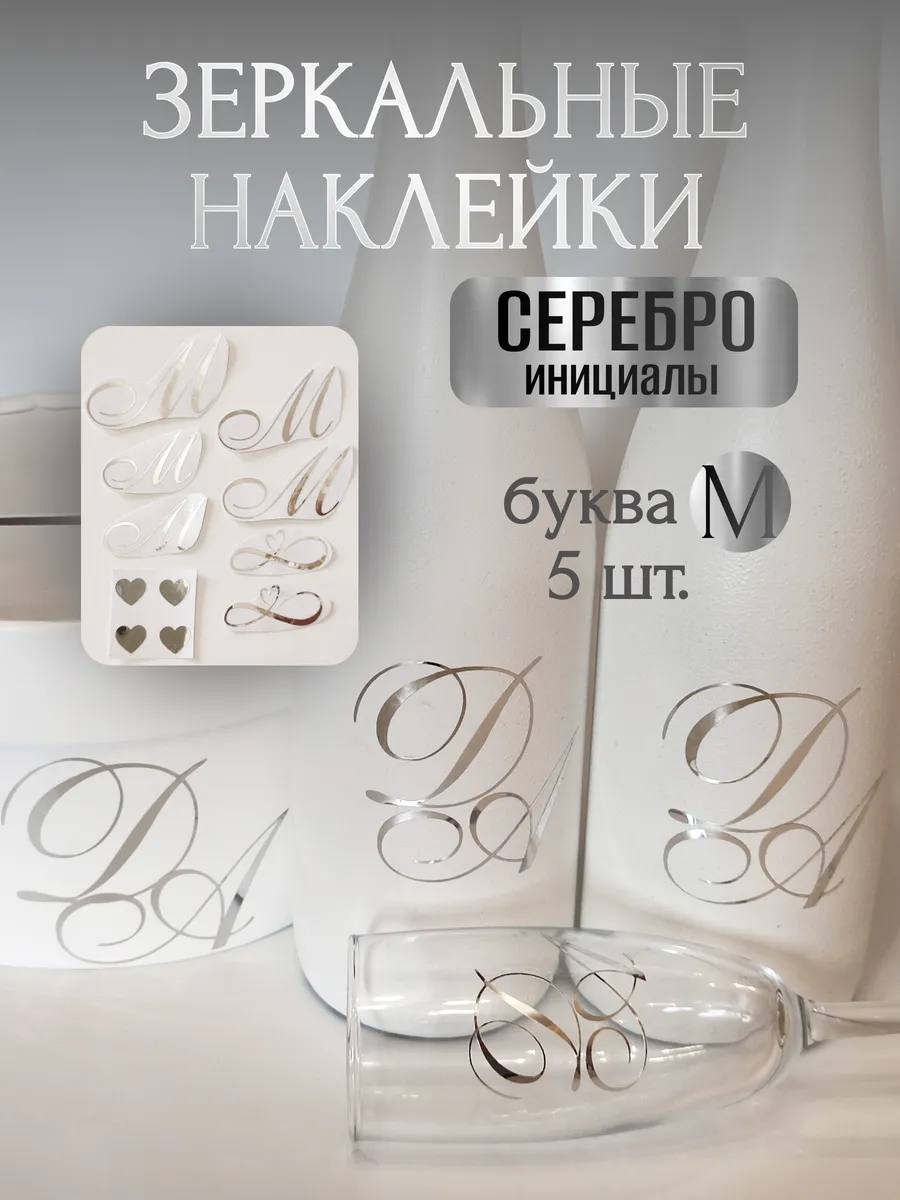 Почему наклейки из зеркального серебра инициалы – отличный выбор для украшения бутылок и бокалов? Они добавят изысканности и блеска Вашему мероприятию, придавая ему особую изюминку. Эти наклейки идеально подходят для нанесения на любые бутылки и свадебные фужеры с гладкой поверхностью. Благодаря специальной клеевой основе они легко фиксируются на поверхности. Вы сможете их использовать не только для стеклянной посуды, но и для окрашенных поверхностей, создавая уникальные декорации. Идеальный выбор для свадебных торжеств. Эти декоративные элементы помогут создать особую атмосферу романтики и подчеркнет статус торжества. В наборе 11 штук наклеек, инициалы для свадебной казны, бутылок, фужеров, а также наклейки бесконечности и сердец. Размеры наклеек отлично подходят под стандартные размеры свадебных аксессуаров, благодаря этому вы сможете создать гармоничный и стильный дизайн, соответствующий атмосфере и особенностям Вашего мероприятия. В карточках товаров магазина можно выбрать любые инициалы алфавита. Очистите бутылки от этикеток. Осторожно отделите прозрачную с наклейкой от белой подложки чтобы все элементы остались на прозрачной пленке. Нанесите наклейку на выбранное место, аккуратно разгладьте. Удалите прозрачную пленку. свадебные наклейки на бутылки; наклейки на бокалы; наклейки на шампанское свадебное; шаблоны свадебных наклеек; свадебные наклейки купить; наклейки на свадебные бокалы; наклейки на свадебные бутылки; свадебные наклейки на бутылки шампанского;