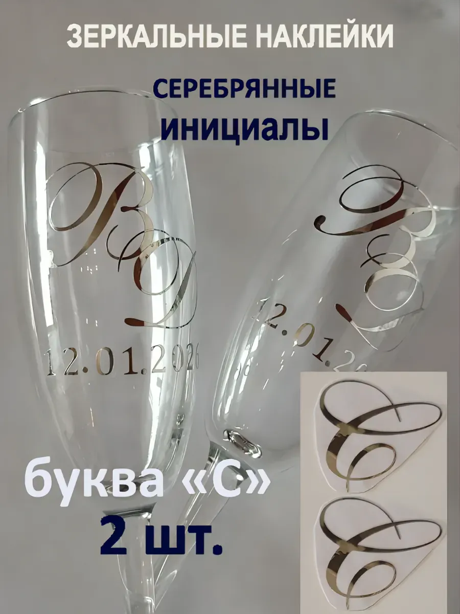 Набор наклеек буквы инициалы из зеркального серебра – отличный выбор для украшения бокалов. Они добавят изысканности и блеска Вашему мероприятию, придавая ему особую изюминку. Эти наклейки идеально подходят для нанесения свадебные бокалы, фужеры с гладкой поверхностью. Благодаря специальной клеевой основе они легко фиксируются на поверхности. Вы сможете их использовать не только для стеклянной посуды, но и для окрашенных поверхностей, создавая уникальные декорации. Идеальный выбор для свадебных торжеств. Эти декоративные элементы помогут создать особую атмосферу романтики и подчеркнет статус торжества. В наборе 2 буквы ( инициалы для 2-х бокалов), декоративные сердечки. Размеры наклеек отлично подходят под стандартные размеры свадебных аксессуаров, благодаря этому вы сможете создать гармоничный и стильный дизайн, соответствующий атмосфере и особенностям Вашего мероприятия. В карточках товаров магазина можно выбрать любые инициалы алфавита. Осторожно отделите прозрачную с наклейкой от белой подложки чтобы все элементы остались на прозрачной пленке. Нанесите наклейку на выбранное место, аккуратно разгладьте. Удалите прозрачную пленку. наклейки на бокалы;