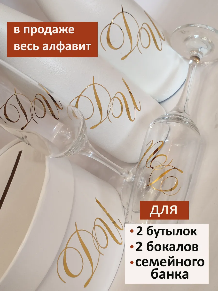 Почему наклейки из зеркального золота – отличный выбор для украшения вадебных бутылок и бокалов ? Они добавят изысканности и блеска Вашему мероприятию, придавая ему особую изюминку. Эти наклейки идеально подходят для нанесения на свадебные бутылки и свадебные фужеры с гладкой поверхностью. Благодаря специальной клеевой основе они легко фиксируются на поверхности. Вы сможете их использовать не только для стеклянной посуды, но и для окрашенных поверхностей, создавая уникальные декорации. Идеальный выбор для свадебных торжеств. Эти декоративные элементы помогут создать особую атмосферу романтики и подчеркнет статус торжества. В наборе 11 штук наклеек, инициалы для свадебной казны, бутылок, фужеров, а также наклейки символа бесконечности и сердец. Размеры наклеек отлично подходят под стандартные размеры свадебных аксессуаров, благодаря этому вы сможете создать гармоничный и стильный дизайн, соответствующий атмосфере и особенностям Вашего мероприятия. В карточках товаров магазина можно выбрать любые инициалы алфавита. Очистите бутылки от этикеток. Осторожно отделите прозрачную с наклейкой от белой подложки чтобы все элементы остались на прозрачной пленке. Нанесите наклейку на выбранное место, аккуратно разгладьте. Удалите прозрачную пленку. свадебные наклейки на бутылки; наклейки на бокалы; наклейки на шампанское свадебное; шаблоны свадебных наклеек; свадебные наклейки купить; наклейки на свадебные бокалы; наклейки на свадебные бутылки; свадебные наклейки на бутылки шампанского;
