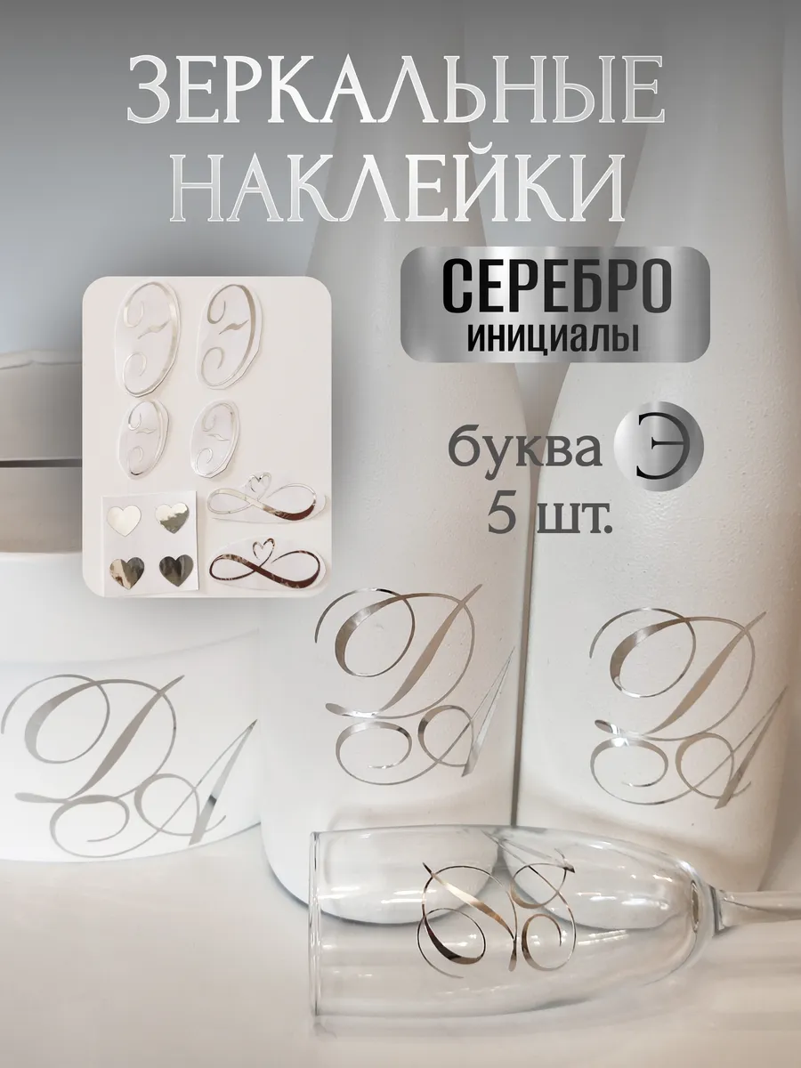 Почему наклейки из зеркального серебра инициалы – отличный выбор для украшения бутылок и бокалов? Они добавят изысканности и блеска Вашему мероприятию, придавая ему особую изюминку. Эти наклейки идеально подходят для нанесения на любые бутылки и свадебные фужеры с гладкой поверхностью. Благодаря специальной клеевой основе они легко фиксируются на поверхности. Вы сможете их использовать не только для стеклянной посуды, но и для окрашенных поверхностей, создавая уникальные декорации. Идеальный выбор для свадебных торжеств. Эти декоративные элементы помогут создать особую атмосферу романтики и подчеркнет статус торжества. В наборе 11 штук наклеек, инициалы для свадебной казны, бутылок, фужеров, а также наклейки бесконечности и сердец. Размеры наклеек отлично подходят под стандартные размеры свадебных аксессуаров, благодаря этому вы сможете создать гармоничный и стильный дизайн, соответствующий атмосфере и особенностям Вашего мероприятия. В карточках товаров магазина можно выбрать любые инициалы алфавита. Очистите бутылки от этикеток. Осторожно отделите прозрачную с наклейкой от белой подложки чтобы все элементы остались на прозрачной пленке. Нанесите наклейку на выбранное место, аккуратно разгладьте. Удалите прозрачную пленку. свадебные наклейки на бутылки; наклейки на бокалы; наклейки на шампанское свадебное; шаблоны свадебных наклеек; свадебные наклейки купить; наклейки на свадебные бокалы; наклейки на свадебные бутылки; свадебные наклейки на бутылки шампанского;