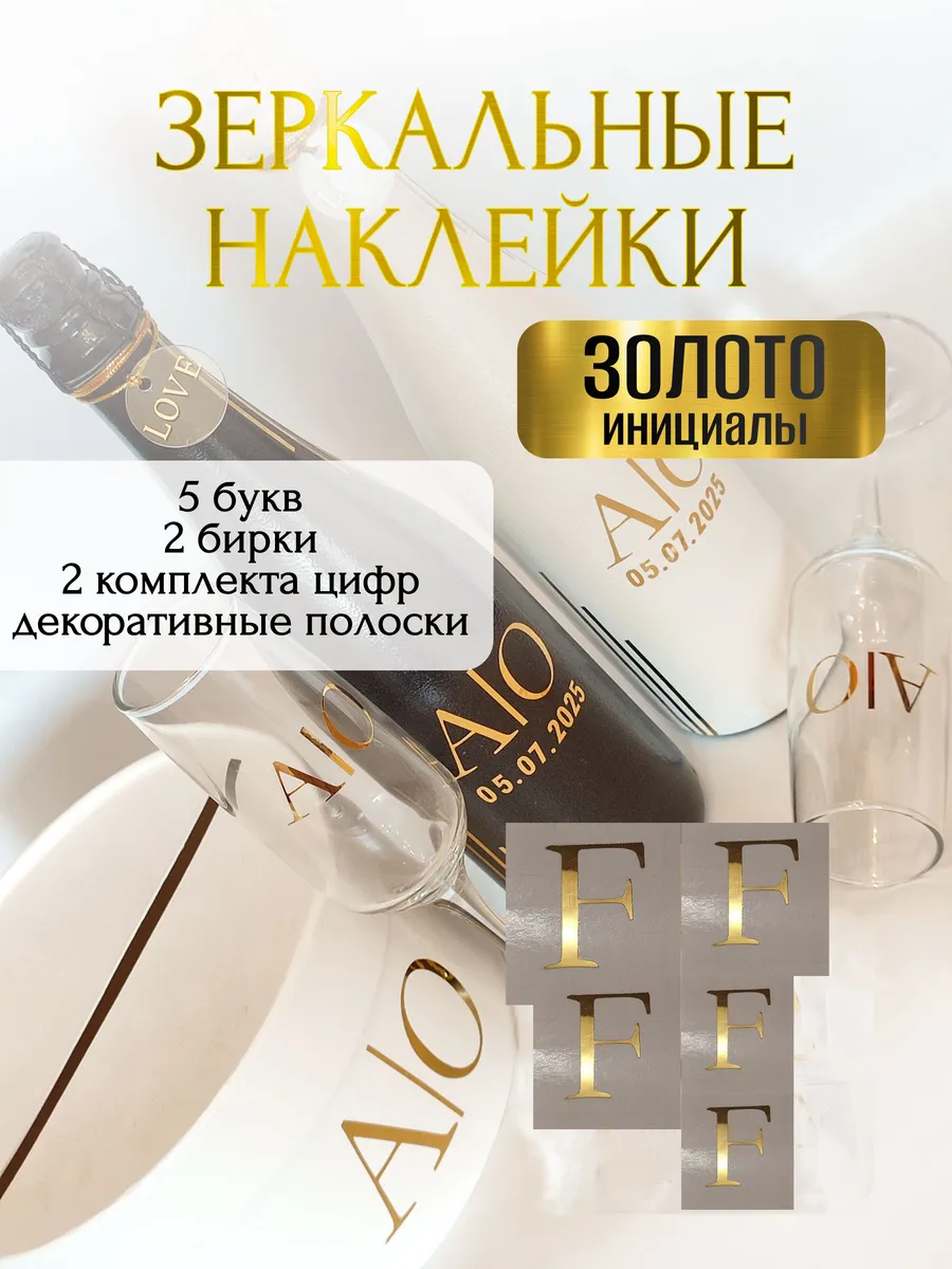 Набор наклеек из зеркального золота – отличный выбор для украшения бутылок и бокалов? Они добавят изысканности и блеска Вашему мероприятию, придавая ему особую изюминку. Эти наклейки идеально подходят для нанесения на любые бутылки и свадебные фужеры с гладкой поверхностью. Благодаря специальной клеевой основе они легко фиксируются на поверхности. Вы сможете их использовать не только для стеклянной посуды, но и для окрашенных поверхностей, создавая уникальные декорации. Идеальный выбор для свадебных торжеств. Эти декоративные элементы помогут создать особую атмосферу романтики и подчеркнет статус торжества. В наборе 6 букв ( инициалы для 2-х бутылок, для 2-х бокалов, для семейного банка), две бирки с надписью "LOVE", два золотистых шнура для бирок, два комплекта цифр (для любой дата 2025-2026), декоративные золотые полоски. Размеры наклеек отлично подходят под стандартные размеры свадебных аксессуаров, благодаря этому вы сможете создать гармоничный и стильный дизайн, соответствующий атмосфере и особенностям Вашего мероприятия. В карточках товаров магазина можно выбрать любые инициалы алфавита. Очистите бутылки от этикеток. Осторожно отделите прозрачную с наклейкой от белой подложки чтобы все элементы остались на прозрачной пленке. Нанесите наклейку на выбранное место, аккуратно разгладьте. Удалите прозрачную пленку. свадебные наклейки на бутылки; наклейки на бокалы; наклейки на шампанское свадебное; шаблоны свадебных наклеек; свадебные наклейки купить; наклейки на свадебные бокалы; наклейки на свадебные бутылки; свадебные наклейки на бутылки шампанского;