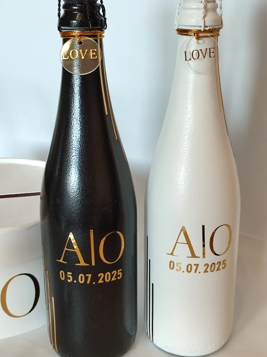 Набор наклеек из зеркального золота – отличный выбор для украшения бутылок и бокалов? Они добавят изысканности и блеска Вашему мероприятию, придавая ему особую изюминку. Эти наклейки идеально подходят для нанесения на любые бутылки и свадебные фужеры с гладкой поверхностью. Благодаря специальной клеевой основе они легко фиксируются на поверхности. Вы сможете их использовать не только для стеклянной посуды, но и для окрашенных поверхностей, создавая уникальные декорации. Идеальный выбор для свадебных торжеств. Эти декоративные элементы помогут создать особую атмосферу романтики и подчеркнет статус торжества. В наборе 5 букв ( инициалы для 2-х бутылок, для 2-х бокалов, для семейного банка), две бирки с надписью "LOVE", два золотистых шнура для бирок, два комплекта цифр (для любой дата 2025-2026), декоративные золотые полоски. Размеры наклеек отлично подходят под стандартные размеры свадебных аксессуаров, благодаря этому вы сможете создать гармоничный и стильный дизайн, соответствующий атмосфере и особенностям Вашего мероприятия. В карточках товаров магазина можно выбрать любые инициалы алфавита. Очистите бутылки от этикеток. Осторожно отделите прозрачную с наклейкой от белой подложки чтобы все элементы остались на прозрачной пленке. Нанесите наклейку на выбранное место, аккуратно разгладьте. Удалите прозрачную пленку. свадебные наклейки на бутылки; наклейки на бокалы; наклейки на шампанское свадебное; шаблоны свадебных наклеек; свадебные наклейки купить; наклейки на свадебные бокалы; наклейки на свадебные бутылки; свадебные наклейки на бутылки шампанского;