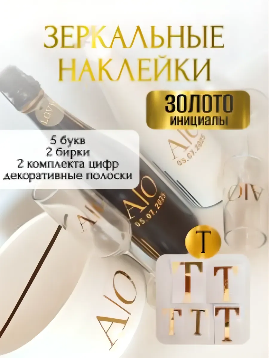 Набор наклеек из зеркального золота – отличный выбор для украшения бутылок и бокалов? Они добавят изысканности и блеска Вашему мероприятию, придавая ему особую изюминку. Эти наклейки идеально подходят для нанесения на любые бутылки и свадебные фужеры с гладкой поверхностью. Благодаря специальной клеевой основе они легко фиксируются на поверхности. Вы сможете их использовать не только для стеклянной посуды, но и для окрашенных поверхностей, создавая уникальные декорации. Идеальный выбор для свадебных торжеств. Эти декоративные элементы помогут создать особую атмосферу романтики и подчеркнет статус торжества. В наборе 6 букв ( инициалы для 2-х бутылок, для 2-х бокалов, для семейного банка), две бирки с надписью "LOVE", два золотистых шнура для бирок, два комплекта цифр (для любой дата 2025-2026), декоративные золотые полоски. Размеры наклеек отлично подходят под стандартные размеры свадебных аксессуаров, благодаря этому вы сможете создать гармоничный и стильный дизайн, соответствующий атмосфере и особенностям Вашего мероприятия. В карточках товаров магазина можно выбрать любые инициалы алфавита. Очистите бутылки от этикеток. Осторожно отделите прозрачную с наклейкой от белой подложки чтобы все элементы остались на прозрачной пленке. Нанесите наклейку на выбранное место, аккуратно разгладьте. Удалите прозрачную пленку. свадебные наклейки на бутылки; наклейки на бокалы; наклейки на шампанское свадебное; шаблоны свадебных наклеек; свадебные наклейки купить; наклейки на свадебные бокалы; наклейки на свадебные бутылки; свадебные наклейки на бутылки шампанского;