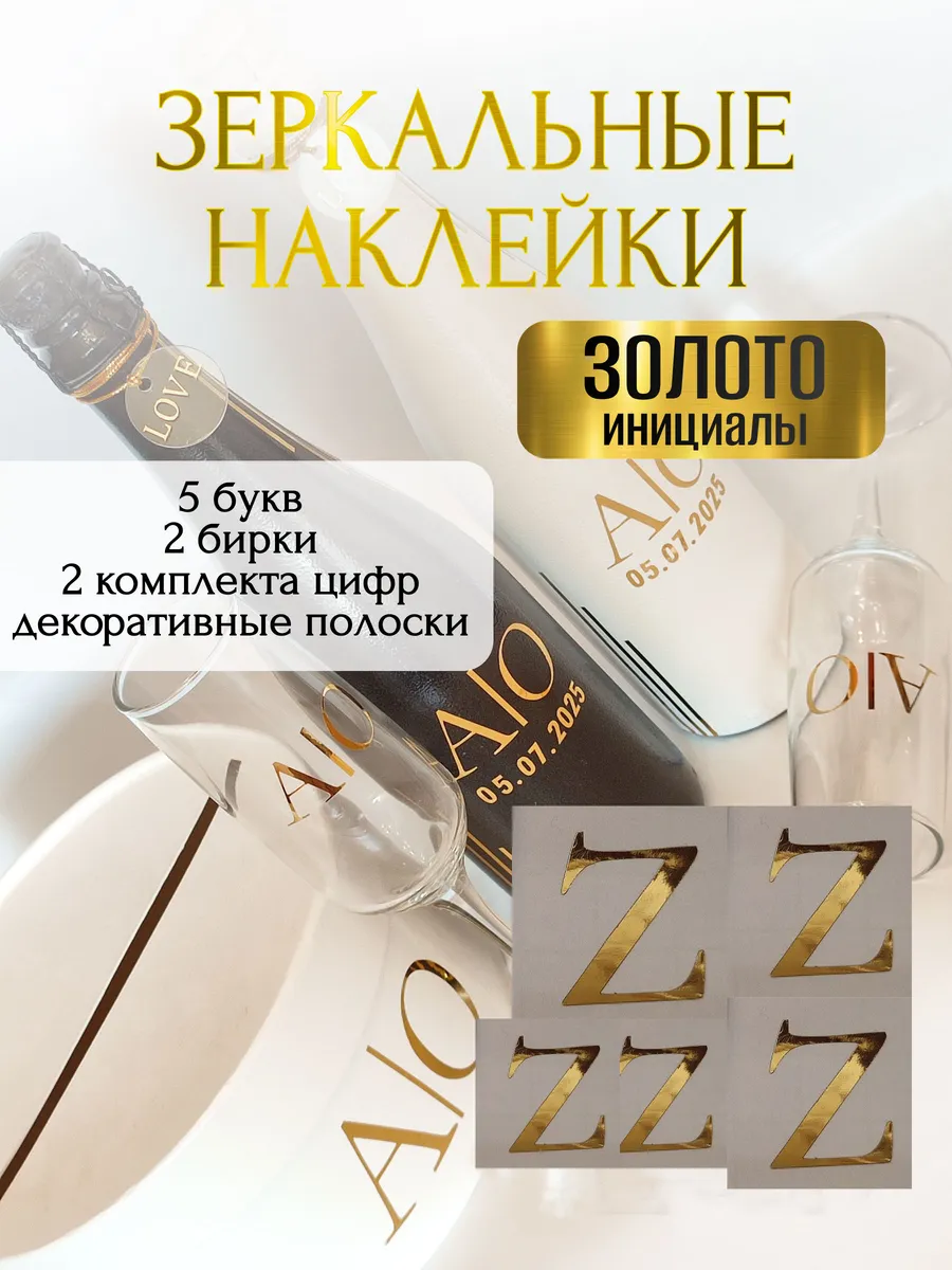 Набор наклеек из зеркального золота – отличный выбор для украшения бутылок и бокалов? Они добавят изысканности и блеска Вашему мероприятию, придавая ему особую изюминку. Эти наклейки идеально подходят для нанесения на любые бутылки и свадебные фужеры с гладкой поверхностью. Благодаря специальной клеевой основе они легко фиксируются на поверхности. Вы сможете их использовать не только для стеклянной посуды, но и для окрашенных поверхностей, создавая уникальные декорации. Идеальный выбор для свадебных торжеств. Эти декоративные элементы помогут создать особую атмосферу романтики и подчеркнет статус торжества. В наборе 6 букв ( инициалы для 2-х бутылок, для 2-х бокалов, для семейного банка), две бирки с надписью "LOVE", два золотистых шнура для бирок, два комплекта цифр (для любой дата 2025-2026), декоративные золотые полоски. Размеры наклеек отлично подходят под стандартные размеры свадебных аксессуаров, благодаря этому вы сможете создать гармоничный и стильный дизайн, соответствующий атмосфере и особенностям Вашего мероприятия. В карточках товаров магазина можно выбрать любые инициалы алфавита. Очистите бутылки от этикеток. Осторожно отделите прозрачную с наклейкой от белой подложки чтобы все элементы остались на прозрачной пленке. Нанесите наклейку на выбранное место, аккуратно разгладьте. Удалите прозрачную пленку. свадебные наклейки на бутылки; наклейки на бокалы; наклейки на шампанское свадебное; шаблоны свадебных наклеек; свадебные наклейки купить; наклейки на свадебные бокалы; наклейки на свадебные бутылки; свадебные наклейки на бутылки шампанского;