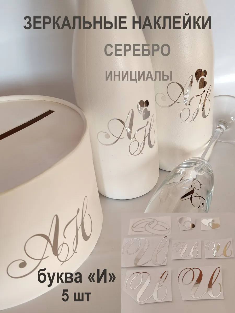 Наклейки свадебные буквы из зеркального серебра инициалы – отличный выбор для украшения бутылок и бокалов? Они добавят изысканности и блеска Вашему мероприятию, придавая ему особую изюминку. Эти наклейки идеально подходят для нанесения на любые бутылки и свадебные фужеры с гладкой поверхностью. Благодаря специальной клеевой основе они легко фиксируются на поверхности. Вы сможете их использовать не только для стеклянной посуды, но и для окрашенных поверхностей, создавая уникальные декорации. Идеальный выбор для свадебных торжеств. Эти декоративные элементы помогут создать особую атмосферу романтики и подчеркнет статус торжества. В наборе 8 штук наклеек, инициалы для свадебной казны, бутылок, фужеров, а также наклейка колец и сердец. Размеры наклеек отлично подходят под стандартные размеры свадебных аксессуаров, благодаря этому вы сможете создать гармоничный и стильный дизайн, соответствующий атмосфере и особенностям Вашего мероприятия. В карточках товаров магазина можно выбрать любые инициалы алфавита. Очистите бутылки от этикеток. Осторожно отделите прозрачную с наклейкой от белой подложки чтобы все элементы остались на прозрачной пленке. Нанесите наклейку на выбранное место, аккуратно разгладьте. Удалите прозрачную пленку. свадебные наклейки на бутылки; наклейки на бокалы; наклейки на шампанское свадебное; шаблоны свадебных наклеек; свадебные наклейки купить; наклейки на свадебные бокалы; наклейки на свадебные бутылки; свадебные наклейки на бутылки шампанского;