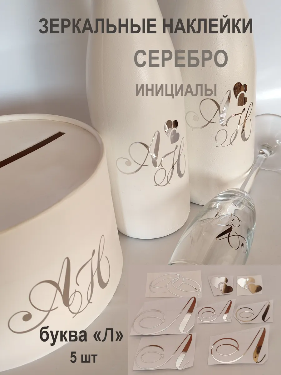 Наклейки свадебные буквы из зеркального серебра инициалы – отличный выбор для украшения бутылок и бокалов? Они добавят изысканности и блеска Вашему мероприятию, придавая ему особую изюминку. Эти наклейки идеально подходят для нанесения на любые бутылки и свадебные фужеры с гладкой поверхностью. Благодаря специальной клеевой основе они легко фиксируются на поверхности. Вы сможете их использовать не только для стеклянной посуды, но и для окрашенных поверхностей, создавая уникальные декорации. Идеальный выбор для свадебных торжеств. Эти декоративные элементы помогут создать особую атмосферу романтики и подчеркнет статус торжества. В наборе 8 штук наклеек, инициалы для свадебной казны, бутылок, фужеров, а также наклейка колец и сердец. Размеры наклеек отлично подходят под стандартные размеры свадебных аксессуаров, благодаря этому вы сможете создать гармоничный и стильный дизайн, соответствующий атмосфере и особенностям Вашего мероприятия. В карточках товаров магазина можно выбрать любые инициалы алфавита. Очистите бутылки от этикеток. Осторожно отделите прозрачную с наклейкой от белой подложки чтобы все элементы остались на прозрачной пленке. Нанесите наклейку на выбранное место, аккуратно разгладьте. Удалите прозрачную пленку. свадебные наклейки на бутылки; наклейки на бокалы; наклейки на шампанское свадебное; шаблоны свадебных наклеек; свадебные наклейки купить; наклейки на свадебные бокалы; наклейки на свадебные бутылки; свадебные наклейки на бутылки шампанского;