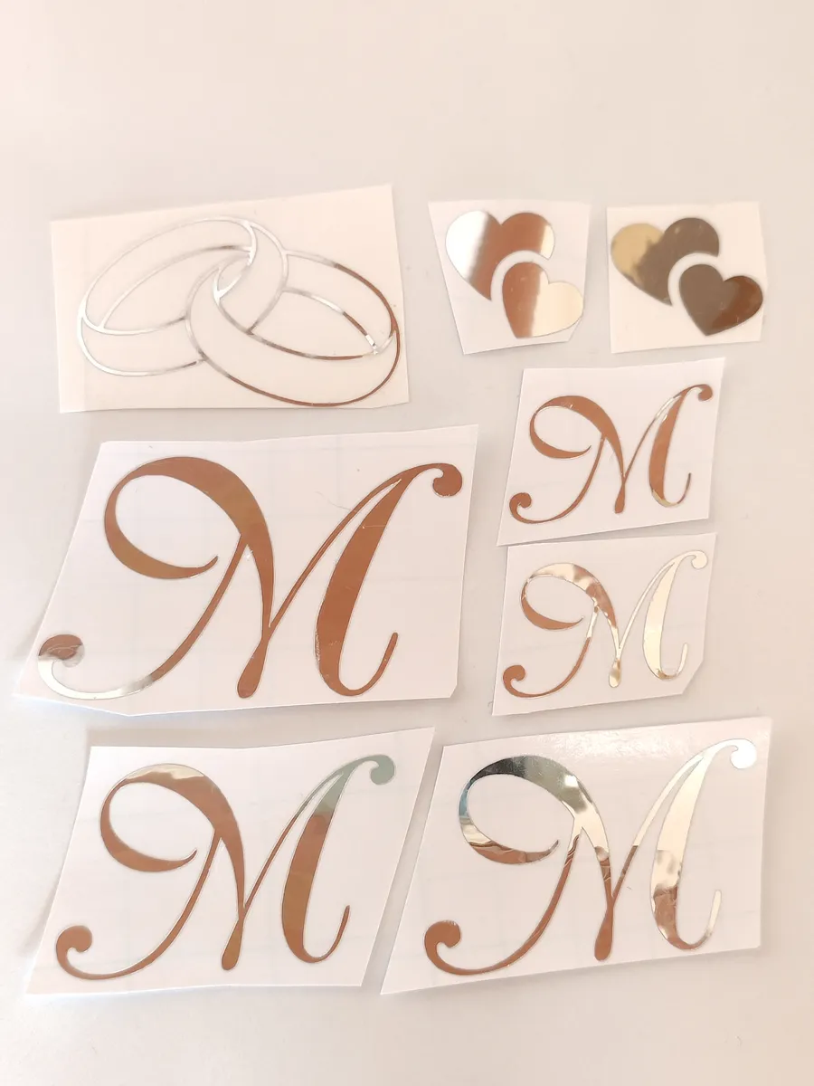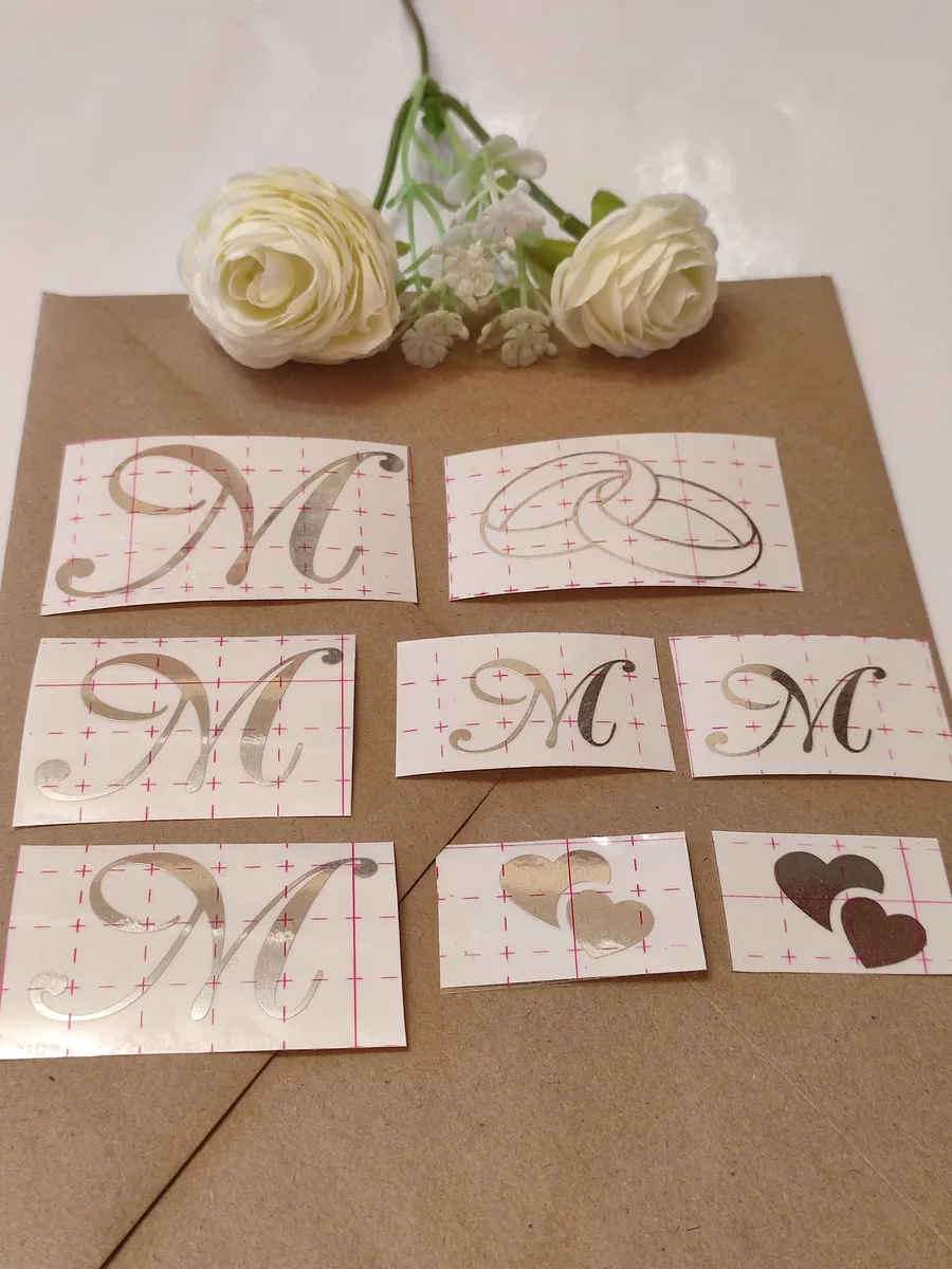 Наклейки свадебные буквы из зеркального серебра инициалы – отличный выбор для украшения бутылок и бокалов? Они добавят изысканности и блеска Вашему мероприятию, придавая ему особую изюминку. Эти наклейки идеально подходят для нанесения на любые бутылки и свадебные фужеры с гладкой поверхностью. Благодаря специальной клеевой основе они легко фиксируются на поверхности. Вы сможете их использовать не только для стеклянной посуды, но и для окрашенных поверхностей, создавая уникальные декорации. Идеальный выбор для свадебных торжеств. Эти декоративные элементы помогут создать особую атмосферу романтики и подчеркнет статус торжества. В наборе 8 штук наклеек, инициалы для свадебной казны, бутылок, фужеров, а также наклейка колец и сердец. Размеры наклеек отлично подходят под стандартные размеры свадебных аксессуаров, благодаря этому вы сможете создать гармоничный и стильный дизайн, соответствующий атмосфере и особенностям Вашего мероприятия. В карточках товаров магазина можно выбрать любые инициалы алфавита. Очистите бутылки от этикеток. Осторожно отделите прозрачную с наклейкой от белой подложки чтобы все элементы остались на прозрачной пленке. Нанесите наклейку на выбранное место, аккуратно разгладьте. Удалите прозрачную пленку. свадебные наклейки на бутылки; наклейки на бокалы; наклейки на шампанское свадебное; шаблоны свадебных наклеек; свадебные наклейки купить; наклейки на свадебные бокалы; наклейки на свадебные бутылки; свадебные наклейки на бутылки шампанского;