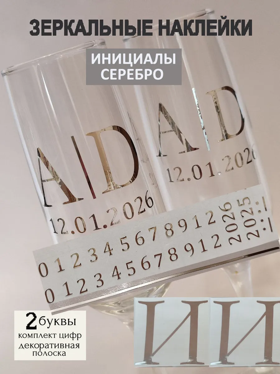 Набор наклеек буквы инициалы и Ваша дата из зеркального серебра – отличный выбор для украшения бокалов. Они добавят изысканности и блеска Вашему мероприятию, придавая ему особую изюминку. Эти наклейки идеально подходят для нанесения свадебные бокалы, фужеры с гладкой поверхностью. Благодаря специальной клеевой основе они легко фиксируются на поверхности. Вы сможете их использовать не только для стеклянной посуды, но и для окрашенных поверхностей, создавая уникальные декорации. Идеальный выбор для свадебных торжеств. Эти декоративные элементы помогут создать особую атмосферу романтики и подчеркнет статус торжества. В наборе 2 буквы ( инициалы для 2-х бокалов), декоративная полоска, комплект цифр для любой даты 2025-2026. Размеры наклеек отлично подходят под стандартные размеры свадебных аксессуаров, благодаря этому вы сможете создать гармоничный и стильный дизайн, соответствующий атмосфере и особенностям Вашего мероприятия. В карточках товаров магазина можно выбрать любые инициалы алфавита. Осторожно отделите прозрачную с наклейкой от белой подложки чтобы все элементы остались на прозрачной пленке. Нанесите наклейку на выбранное место, аккуратно разгладьте. Удалите прозрачную пленку. наклейки на бокалы;