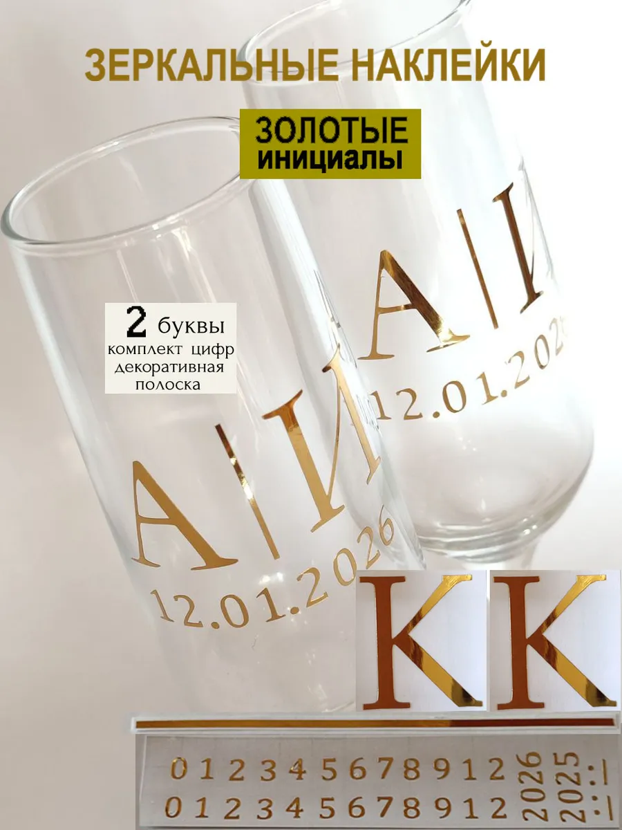 Набор наклеек буквы инициалы и Ваша дата из зеркального золота – отличный выбор для украшения бокалов. Они добавят изысканности и блеска Вашему мероприятию, придавая ему особую изюминку. Эти наклейки идеально подходят для нанесения свадебные бокалы, фужеры с гладкой поверхностью. Благодаря специальной клеевой основе они легко фиксируются на поверхности. Вы сможете их использовать не только для стеклянной посуды, но и для окрашенных поверхностей, создавая уникальные декорации. Идеальный выбор для свадебных торжеств. Эти декоративные элементы помогут создать особую атмосферу романтики и подчеркнет статус торжества. В наборе 2 буквы ( инициалы для 2-х бокалов), декоративная полоска, комплект цифр для любой даты 2025-2026. Размеры наклеек отлично подходят под стандартные размеры свадебных аксессуаров, благодаря этому вы сможете создать гармоничный и стильный дизайн, соответствующий атмосфере и особенностям Вашего мероприятия. В карточках товаров магазина можно выбрать любые инициалы алфавита. Осторожно отделите прозрачную с наклейкой от белой подложки чтобы все элементы остались на прозрачной пленке. Нанесите наклейку на выбранное место, аккуратно разгладьте. Удалите прозрачную пленку. наклейки на бокалы;