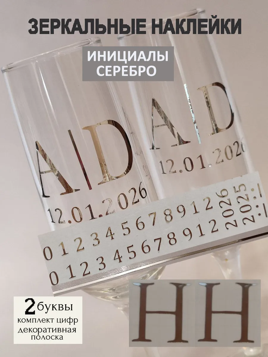 Набор наклеек буквы инициалы и Ваша дата из зеркального серебра – отличный выбор для украшения бокалов. Они добавят изысканности и блеска Вашему мероприятию, придавая ему особую изюминку. Эти наклейки идеально подходят для нанесения свадебные бокалы, фужеры с гладкой поверхностью. Благодаря специальной клеевой основе они легко фиксируются на поверхности. Вы сможете их использовать не только для стеклянной посуды, но и для окрашенных поверхностей, создавая уникальные декорации. Идеальный выбор для свадебных торжеств. Эти декоративные элементы помогут создать особую атмосферу романтики и подчеркнет статус торжества. В наборе 2 буквы ( инициалы для 2-х бокалов), декоративная полоска, комплект цифр для любой даты 2025-2026. Размеры наклеек отлично подходят под стандартные размеры свадебных аксессуаров, благодаря этому вы сможете создать гармоничный и стильный дизайн, соответствующий атмосфере и особенностям Вашего мероприятия. В карточках товаров магазина можно выбрать любые инициалы алфавита. Осторожно отделите прозрачную с наклейкой от белой подложки чтобы все элементы остались на прозрачной пленке. Нанесите наклейку на выбранное место, аккуратно разгладьте. Удалите прозрачную пленку. наклейки на бокалы;