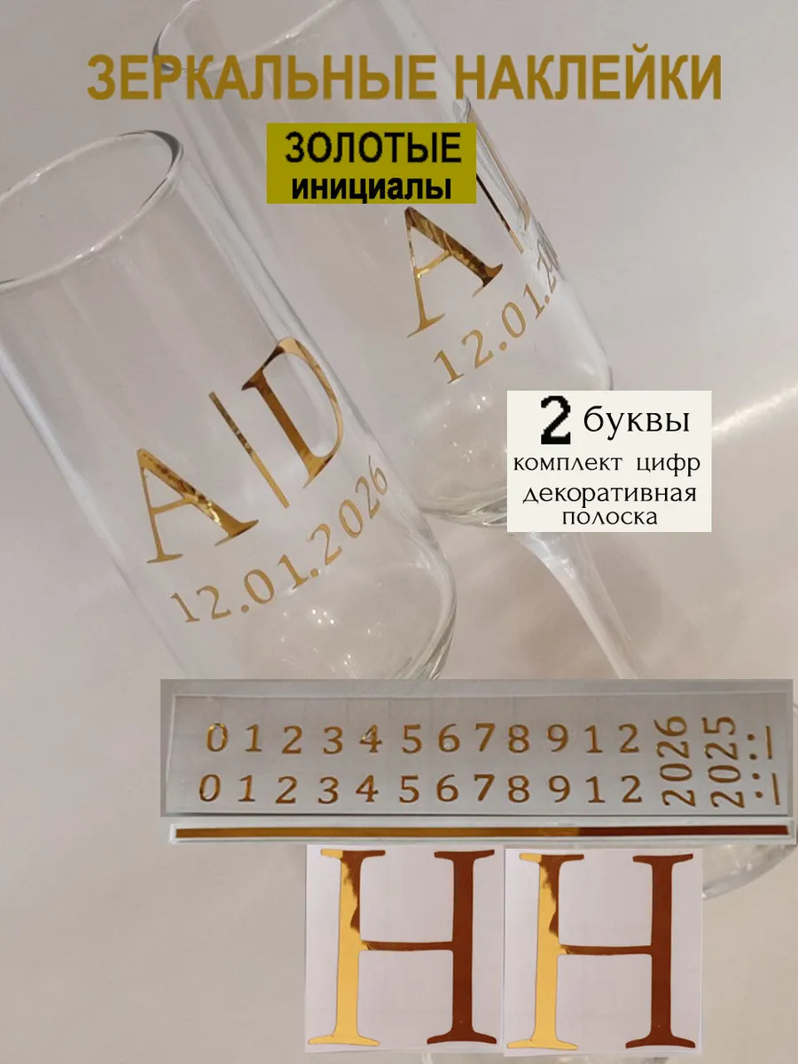 Набор наклеек буквы инициалы и Ваша дата из зеркального золота – отличный выбор для украшения бокалов. Они добавят изысканности и блеска Вашему мероприятию, придавая ему особую изюминку. Эти наклейки идеально подходят для нанесения свадебные бокалы, фужеры с гладкой поверхностью. Благодаря специальной клеевой основе они легко фиксируются на поверхности. Вы сможете их использовать не только для стеклянной посуды, но и для окрашенных поверхностей, создавая уникальные декорации. Идеальный выбор для свадебных торжеств. Эти декоративные элементы помогут создать особую атмосферу романтики и подчеркнет статус торжества. В наборе 2 буквы ( инициалы для 2-х бокалов), декоративная полоска, комплект цифр для любой даты 2025-2026. Размеры наклеек отлично подходят под стандартные размеры свадебных аксессуаров, благодаря этому вы сможете создать гармоничный и стильный дизайн, соответствующий атмосфере и особенностям Вашего мероприятия. В карточках товаров магазина можно выбрать любые инициалы алфавита. Осторожно отделите прозрачную с наклейкой от белой подложки чтобы все элементы остались на прозрачной пленке. Нанесите наклейку на выбранное место, аккуратно разгладьте. Удалите прозрачную пленку. наклейки на бокалы;