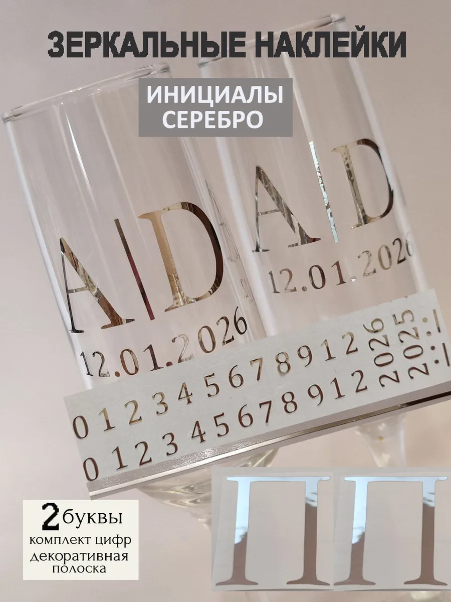 Набор наклеек буквы инициалы и Ваша дата из зеркального серебра – отличный выбор для украшения бокалов. Они добавят изысканности и блеска Вашему мероприятию, придавая ему особую изюминку. Эти наклейки идеально подходят для нанесения свадебные бокалы, фужеры с гладкой поверхностью. Благодаря специальной клеевой основе они легко фиксируются на поверхности. Вы сможете их использовать не только для стеклянной посуды, но и для окрашенных поверхностей, создавая уникальные декорации. Идеальный выбор для свадебных торжеств. Эти декоративные элементы помогут создать особую атмосферу романтики и подчеркнет статус торжества. В наборе 2 буквы ( инициалы для 2-х бокалов), декоративная полоска, комплект цифр для любой даты 2025-2026. Размеры наклеек отлично подходят под стандартные размеры свадебных аксессуаров, благодаря этому вы сможете создать гармоничный и стильный дизайн, соответствующий атмосфере и особенностям Вашего мероприятия. В карточках товаров магазина можно выбрать любые инициалы алфавита. Осторожно отделите прозрачную с наклейкой от белой подложки чтобы все элементы остались на прозрачной пленке. Нанесите наклейку на выбранное место, аккуратно разгладьте. Удалите прозрачную пленку. наклейки на бокалы;