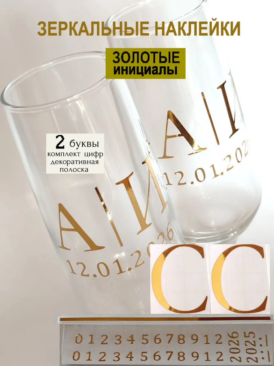 Набор наклеек буквы инициалы и Ваша дата из зеркального золота – отличный выбор для украшения бокалов. Они добавят изысканности и блеска Вашему мероприятию, придавая ему особую изюминку. Эти наклейки идеально подходят для нанесения свадебные бокалы, фужеры с гладкой поверхностью. Благодаря специальной клеевой основе они легко фиксируются на поверхности. Вы сможете их использовать не только для стеклянной посуды, но и для окрашенных поверхностей, создавая уникальные декорации. Идеальный выбор для свадебных торжеств. Эти декоративные элементы помогут создать особую атмосферу романтики и подчеркнет статус торжества. В наборе 2 буквы ( инициалы для 2-х бокалов), декоративная полоска, комплект цифр для любой даты 2025-2026. Размеры наклеек отлично подходят под стандартные размеры свадебных аксессуаров, благодаря этому вы сможете создать гармоничный и стильный дизайн, соответствующий атмосфере и особенностям Вашего мероприятия. В карточках товаров магазина можно выбрать любые инициалы алфавита. Осторожно отделите прозрачную с наклейкой от белой подложки чтобы все элементы остались на прозрачной пленке. Нанесите наклейку на выбранное место, аккуратно разгладьте. Удалите прозрачную пленку. наклейки на бокалы;