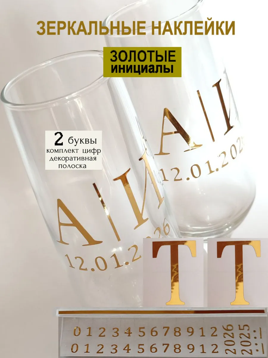 Набор наклеек буквы инициалы и Ваша дата из зеркального золота – отличный выбор для украшения бокалов. Они добавят изысканности и блеска Вашему мероприятию, придавая ему особую изюминку. Эти наклейки идеально подходят для нанесения свадебные бокалы, фужеры с гладкой поверхностью. Благодаря специальной клеевой основе они легко фиксируются на поверхности. Вы сможете их использовать не только для стеклянной посуды, но и для окрашенных поверхностей, создавая уникальные декорации. Идеальный выбор для свадебных торжеств. Эти декоративные элементы помогут создать особую атмосферу романтики и подчеркнет статус торжества. В наборе 2 буквы ( инициалы для 2-х бокалов), декоративная полоска, комплект цифр для любой даты 2025-2026. Размеры наклеек отлично подходят под стандартные размеры свадебных аксессуаров, благодаря этому вы сможете создать гармоничный и стильный дизайн, соответствующий атмосфере и особенностям Вашего мероприятия. В карточках товаров магазина можно выбрать любые инициалы алфавита. Осторожно отделите прозрачную с наклейкой от белой подложки чтобы все элементы остались на прозрачной пленке. Нанесите наклейку на выбранное место, аккуратно разгладьте. Удалите прозрачную пленку. наклейки на бокалы;