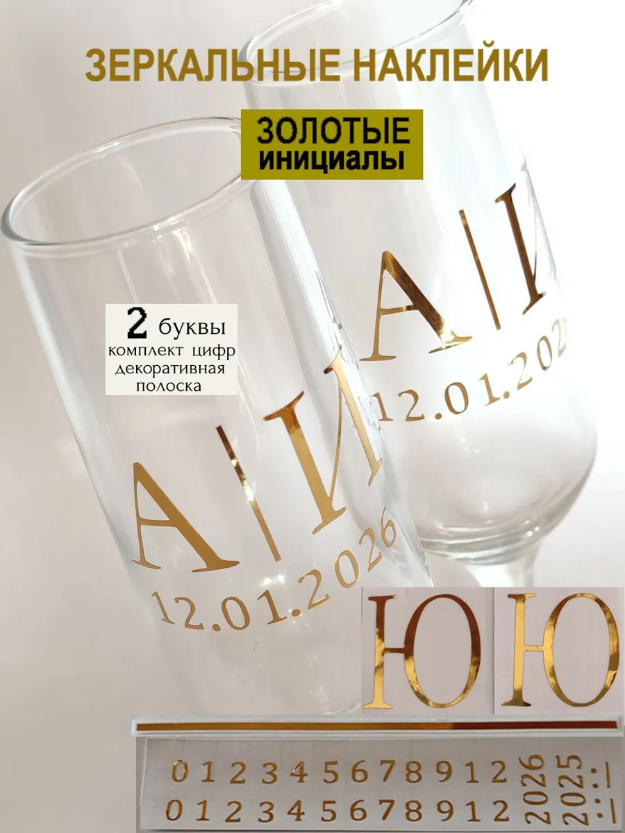 Набор наклеек буквы инициалы и Ваша дата из зеркального золота – отличный выбор для украшения бокалов. Они добавят изысканности и блеска Вашему мероприятию, придавая ему особую изюминку. Эти наклейки идеально подходят для нанесения свадебные бокалы, фужеры с гладкой поверхностью. Благодаря специальной клеевой основе они легко фиксируются на поверхности. Вы сможете их использовать не только для стеклянной посуды, но и для окрашенных поверхностей, создавая уникальные декорации. Идеальный выбор для свадебных торжеств. Эти декоративные элементы помогут создать особую атмосферу романтики и подчеркнет статус торжества. В наборе 2 буквы ( инициалы для 2-х бокалов), декоративная полоска, комплект цифр для любой даты 2025-2026. Размеры наклеек отлично подходят под стандартные размеры свадебных аксессуаров, благодаря этому вы сможете создать гармоничный и стильный дизайн, соответствующий атмосфере и особенностям Вашего мероприятия. В карточках товаров магазина можно выбрать любые инициалы алфавита. Осторожно отделите прозрачную с наклейкой от белой подложки чтобы все элементы остались на прозрачной пленке. Нанесите наклейку на выбранное место, аккуратно разгладьте. Удалите прозрачную пленку. наклейки на бокалы;