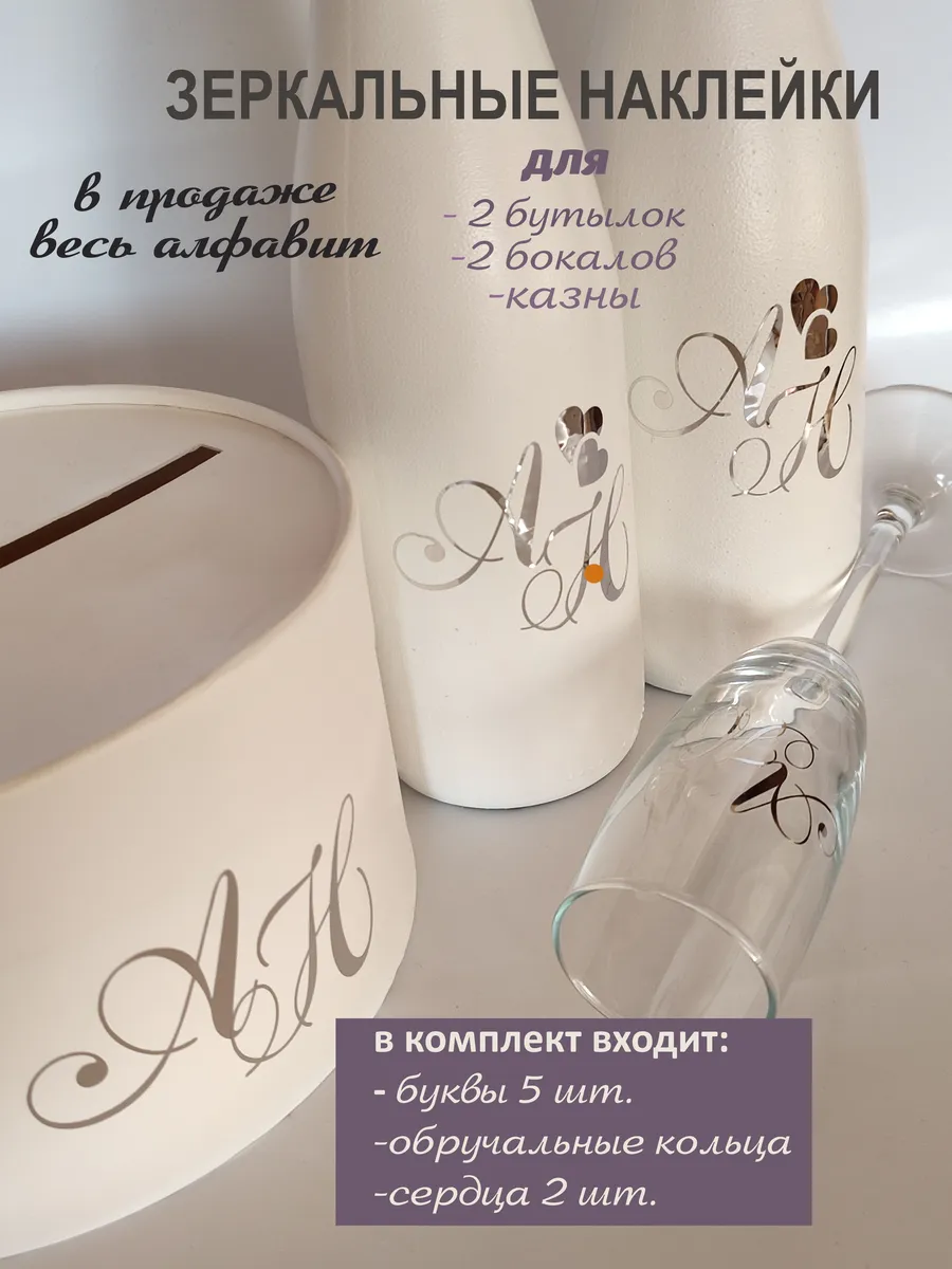 Почему наклейки из зеркального серебра – отличный выбор для украшения вадебных бутылок и бокалов ? Они добавят изысканности и блеска Вашему мероприятию, придавая ему особую изюминку. Эти наклейки идеально подходят для нанесения на свадебные бутылки и свадебные фужеры с гладкой поверхностью. Благодаря специальной клеевой основе они легко фиксируются на поверхности. Вы сможете их использовать не только для стеклянной посуды, но и для окрашенных поверхностей, создавая уникальные декорации. Идеальный выбор для свадебных торжеств. Эти декоративные элементы помогут создать особую атмосферу романтики и подчеркнет статус торжества. В наборе 8 штук наклеек, инициалы для свадебной казны, бутылок, фужеров, а также наклейки колечки и сердечки. Размеры наклеек отлично подходят под стандартные размеры свадебных аксессуаров, благодаря этому вы сможете создать гармоничный и стильный дизайн, соответствующий атмосфере и особенностям Вашего мероприятия. В карточках товаров магазина можно выбрать любые инициалы алфавита. Очистите бутылки от этикеток. Осторожно отделите прозрачную с наклейкой от белой подложки чтобы все элементы остались на прозрачной пленке. Нанесите наклейку на выбранное место, аккуратно разгладьте. Удалите прозрачную пленку. свадебные наклейки на бутылки; наклейки на бокалы; наклейки на шампанское свадебное; шаблоны свадебных наклеек; свадебные наклейки купить; наклейки на свадебные бокалы; наклейки на свадебные бутылки; свадебные наклейки на бутылки шампанского;