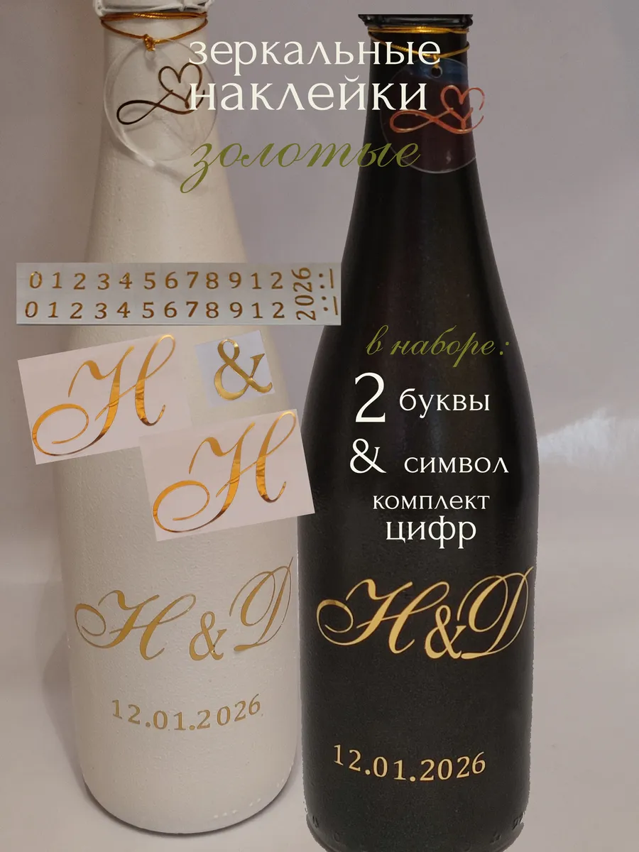 Набор наклеек буквы инициалы и цифры из зеркального золота – отличный выбор для украшения бутылок и бокалов. Они добавят изысканности и блеска Вашему мероприятию, придавая ему особую изюминку. Эти наклейки идеально подходят для нанесения свадебные бутылки или бокалы с гладкой поверхностью. Благодаря специальной клеевой основе они легко фиксируются на поверхности. Вы сможете их использовать не только для стеклянной посуды, но и для окрашенных поверхностей, создавая уникальные декорации. Идеальный выбор для свадебных торжеств. Эти декоративные элементы помогут создать особую атмосферу романтики и подчеркнет статус торжества. В наборе: 2 буквы - инициалы для 2-х бокалов или бутылок, символ бесконечности, комплект цифр для любой даты 2026 г. Размер букв 3 см в высоту отлично подходит под стандартные размеры свадебных аксессуаров, благодаря этому вы сможете создать гармоничный и стильный дизайн, соответствующий атмосфере и особенностям Вашего мероприятия. В карточках товаров магазина можно выбрать любые инициалы алфавита.