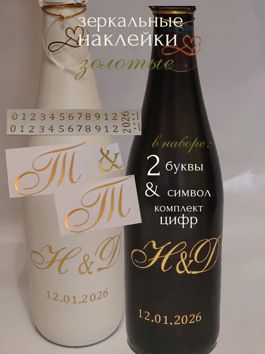 Набор наклеек буквы инициалы и цифры из зеркального золота – отличный выбор для украшения бутылок и бокалов. Они добавят изысканности и блеска Вашему мероприятию, придавая ему особую изюминку. Эти наклейки идеально подходят для нанесения свадебные бутылки или бокалы с гладкой поверхностью. Благодаря специальной клеевой основе они легко фиксируются на поверхности. Вы сможете их использовать не только для стеклянной посуды, но и для окрашенных поверхностей, создавая уникальные декорации. Идеальный выбор для свадебных торжеств. Эти декоративные элементы помогут создать особую атмосферу романтики и подчеркнет статус торжества. В наборе: 2 буквы - инициалы для 2-х бокалов или бутылок, символ бесконечности, комплект цифр для любой даты 2026 г. Размер букв 3 см в высоту отлично подходит под стандартные размеры свадебных аксессуаров, благодаря этому вы сможете создать гармоничный и стильный дизайн, соответствующий атмосфере и особенностям Вашего мероприятия. В карточках товаров магазина можно выбрать любые инициалы алфавита.