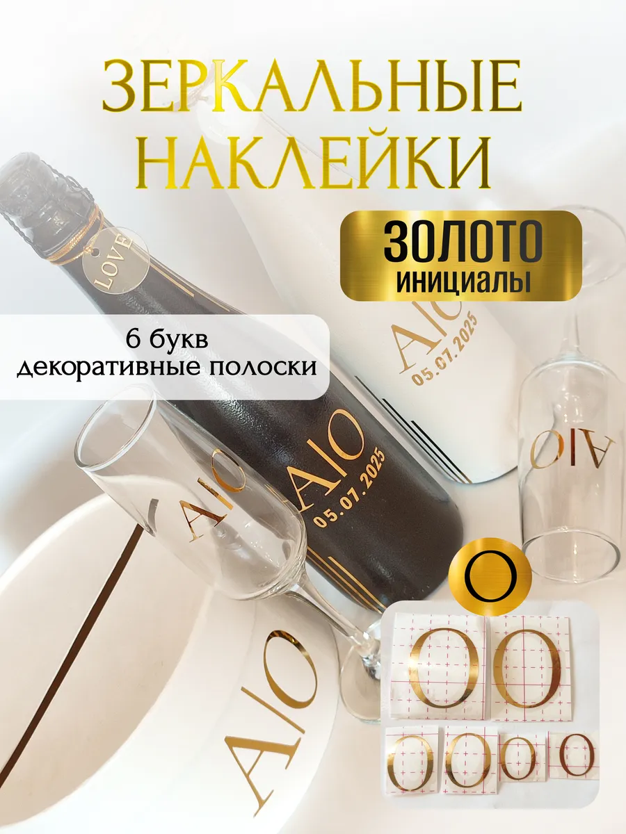 Набор наклеек из зеркального золота – отличный выбор для украшения бутылок и бокалов? Они добавят изысканности и блеска Вашему мероприятию, придавая ему особую изюминку. Эти наклейки идеально подходят для нанесения на любые бутылки и свадебные фужеры с гладкой поверхностью. Благодаря специальной клеевой основе они легко фиксируются на поверхности. Вы сможете их использовать не только для стеклянной посуды, но и для окрашенных поверхностей, создавая уникальные декорации. Идеальный выбор для свадебных торжеств. Эти декоративные элементы помогут создать особую атмосферу романтики и подчеркнет статус торжества. В наборе 6 букв ( инициалы для 2-х бутылок, для 2-х бокалов, для семейного банка), декоративные серебрянные полоски. Размеры наклеек отлично подходят под стандартные размеры свадебных аксессуаров, благодаря этому вы сможете создать гармоничный и стильный дизайн, соответствующий атмосфере и особенностям Вашего мероприятия. В карточках товаров магазина можно выбрать любые инициалы алфавита. Очистите бутылки от этикеток. Осторожно отделите прозрачную с наклейкой от белой подложки чтобы все элементы остались на прозрачной пленке. Нанесите наклейку на выбранное место, аккуратно разгладьте. Удалите прозрачную пленку. свадебные наклейки на бутылки; наклейки на бокалы; наклейки на шампанское свадебное; шаблоны свадебных наклеек; свадебные наклейки купить; наклейки на свадебные бокалы; наклейки на свадебные бутылки; свадебные наклейки на бутылки шампанского;