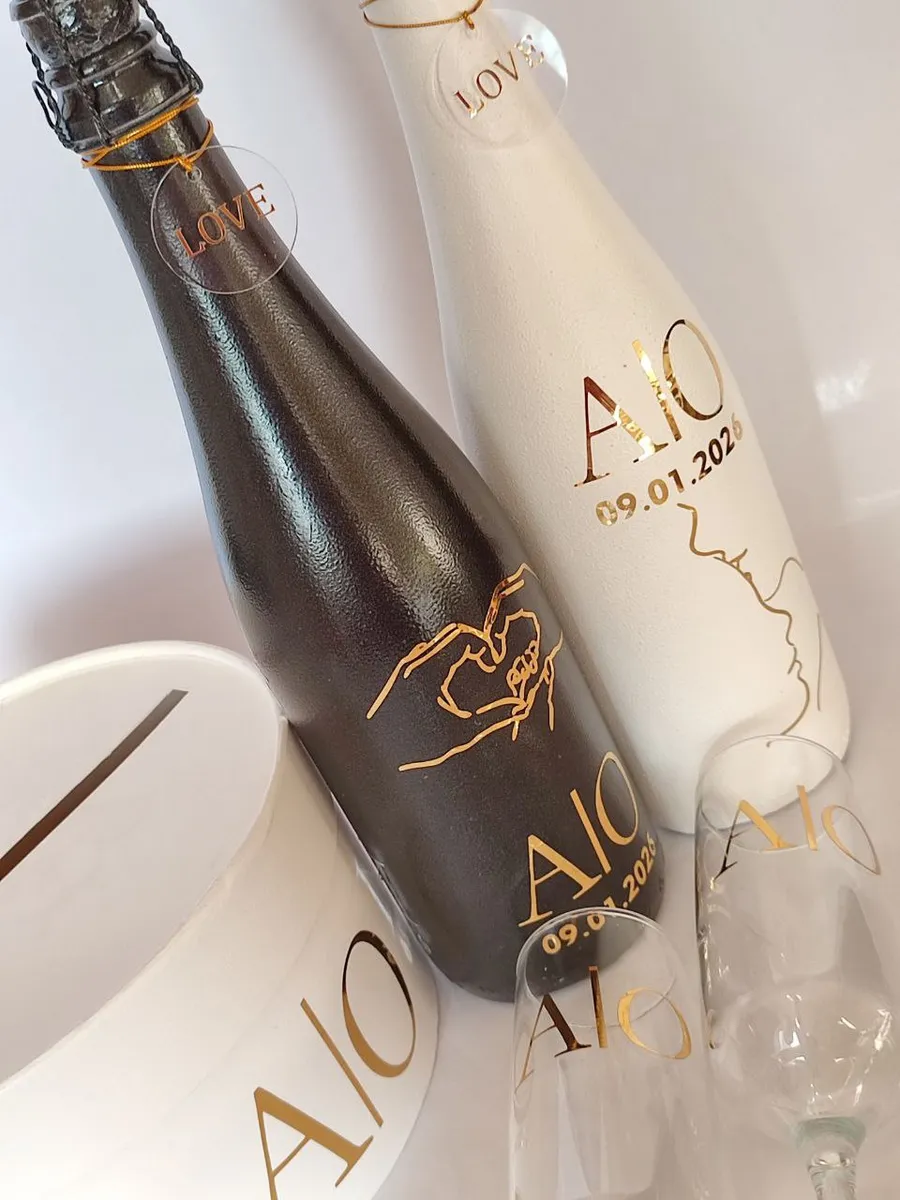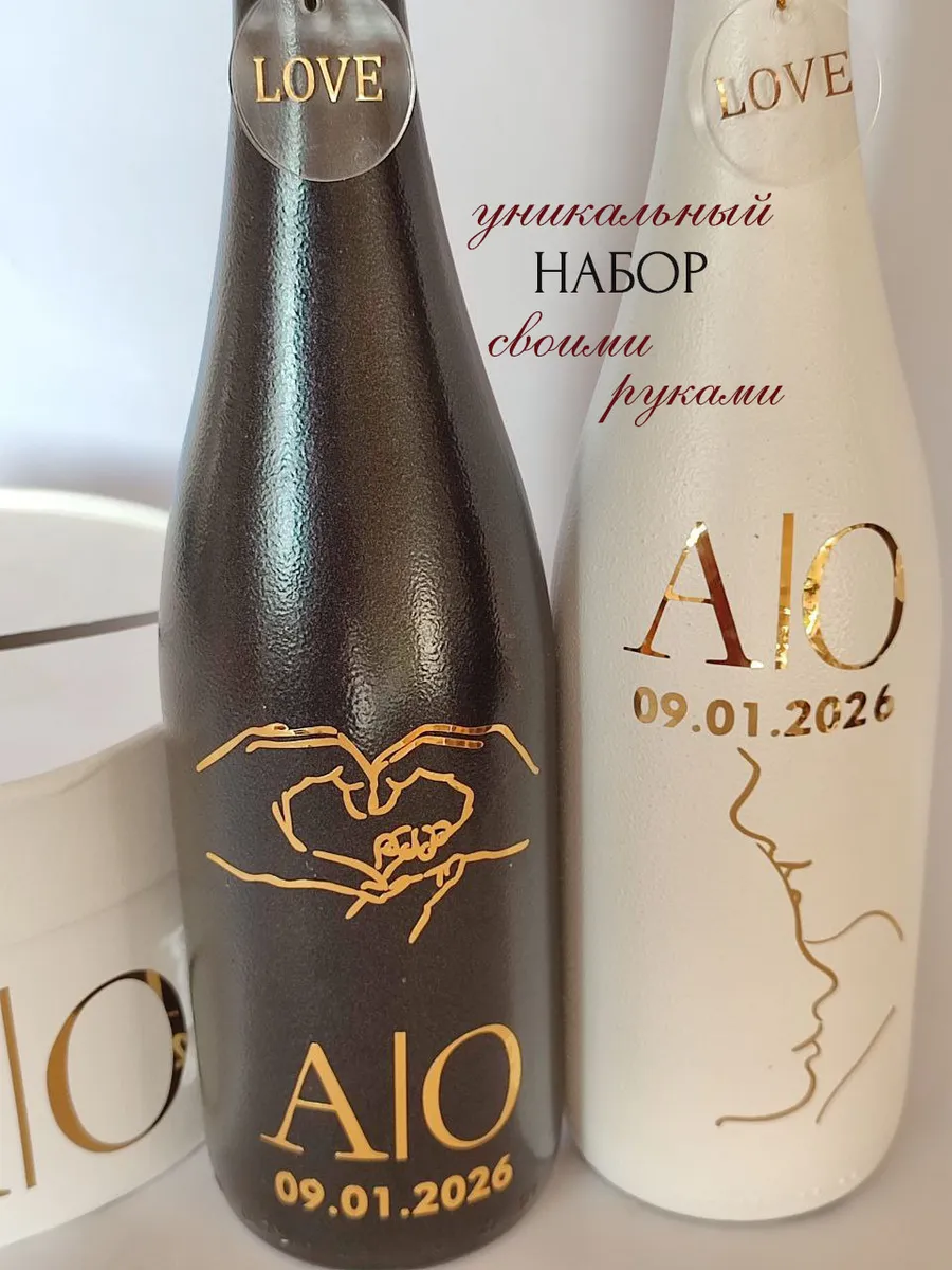 Наклейки из зеркального золота – отличный выбор для украшения бутылок и бокалов. Создай уникльный дизайн своими руками! Эти наклейки идеально подходят для нанесения на любые бутылки и свадебные фужеры с гладкой поверхностью. Благодаря специальной клеевой основе они легко фиксируются на поверхности. Вы сможете их использовать не только для стеклянной посуды, но и для окрашенных поверхностей, создавая уникальные декорации. Идеальный выбор для свадебных торжеств. В наборе наклейка силуэт " Руки" и силуэт "Пара". Дополнительно можно приобрести Наборы с инициалами (все буквы алфавита) и датой. Очистите бутылки от этикеток. Осторожно отделите прозрачную с наклейкой от белой подложки чтобы все элементы остались на прозрачной пленке. Нанесите наклейку на выбранное место, аккуратно разгладьте. Удалите прозрачную пленку. свадебные наклейки на бутылки; наклейки на бокалы; наклейки на шампанское свадебное; шаблоны свадебных наклеек; свадебные наклейки купить; наклейки на свадебные бокалы; наклейки на свадебные бутылки; свадебные наклейки на бутылки шампанского;ого;кого;