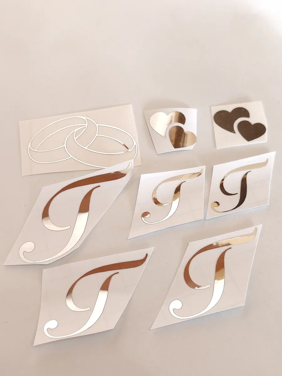 Почему наклейки из зеркального серебра инициалы – отличный выбор для украшения бутылок и бокалов? Они добавят изысканности и блеска Вашему мероприятию, придавая ему особую изюминку. Эти наклейки идеально подходят для нанесения на любые бутылки и свадебные фужеры с гладкой поверхностью. Благодаря специальной клеевой основе они легко фиксируются на поверхности. Вы сможете их использовать не только для стеклянной посуды, но и для окрашенных поверхностей, создавая уникальные декорации. Идеальный выбор для свадебных торжеств. Эти декоративные элементы помогут создать особую атмосферу романтики и подчеркнет статус торжества. В наборе 8 штук наклеек, инициалы для свадебной казны, бутылок, фужеров, а также наклейка колец и сердец. Размеры наклеек отлично подходят под стандартные размеры свадебных аксессуаров, благодаря этому вы сможете создать гармоничный и стильный дизайн, соответствующий атмосфере и особенностям Вашего мероприятия. В карточках товаров магазина можно выбрать любые инициалы алфавита. Очистите бутылки от этикеток. Осторожно отделите прозрачную с наклейкой от белой подложки чтобы все элементы остались на прозрачной пленке. Нанесите наклейку на выбранное место, аккуратно разгладьте. Удалите прозрачную пленку. свадебные наклейки на бутылки; наклейки на бокалы; наклейки на шампанское свадебное; шаблоны свадебных наклеек; свадебные наклейки купить; наклейки на свадебные бокалы; наклейки на свадебные бутылки; свадебные наклейки на бутылки шампанского;