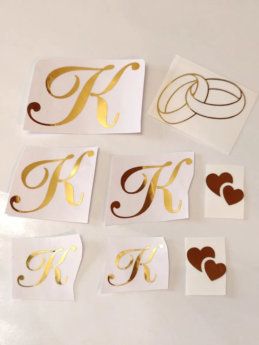 Почему наклейки из зеркального золота инициалы – отличный выбор для украшения бутылок и бокалов? Они добавят изысканности и блеска Вашему мероприятию, придавая ему особую изюминку. Эти наклейки идеально подходят для нанесения на любые бутылки и свадебные фужеры с гладкой поверхностью. Благодаря специальной клеевой основе они легко фиксируются на поверхности. Вы сможете их использовать не только для стеклянной посуды, но и для окрашенных поверхностей, создавая уникальные декорации. Идеальный выбор для свадебных торжеств. Эти декоративные элементы помогут создать особую атмосферу романтики и подчеркнет статус торжества. В наборе 8 штук наклеек, инициалы для свадебной казны, бутылок, фужеров, а также наклейка колец и сердец. Размеры наклеек отлично подходят под стандартные размеры свадебных аксессуаров, благодаря этому вы сможете создать гармоничный и стильный дизайн, соответствующий атмосфере и особенностям Вашего мероприятия. В карточках товаров магазина можно выбрать любые инициалы алфавита. Очистите бутылки от этикеток. Осторожно отделите прозрачную с наклейкой от белой подложки чтобы все элементы остались на прозрачной пленке. Нанесите наклейку на выбранное место, аккуратно разгладьте. Удалите прозрачную пленку. свадебные наклейки на бутылки; наклейки на бокалы; наклейки на шампанское свадебное; шаблоны свадебных наклеек; свадебные наклейки купить; наклейки на свадебные бокалы; наклейки на свадебные бутылки; свадебные наклейки на бутылки шампанского;