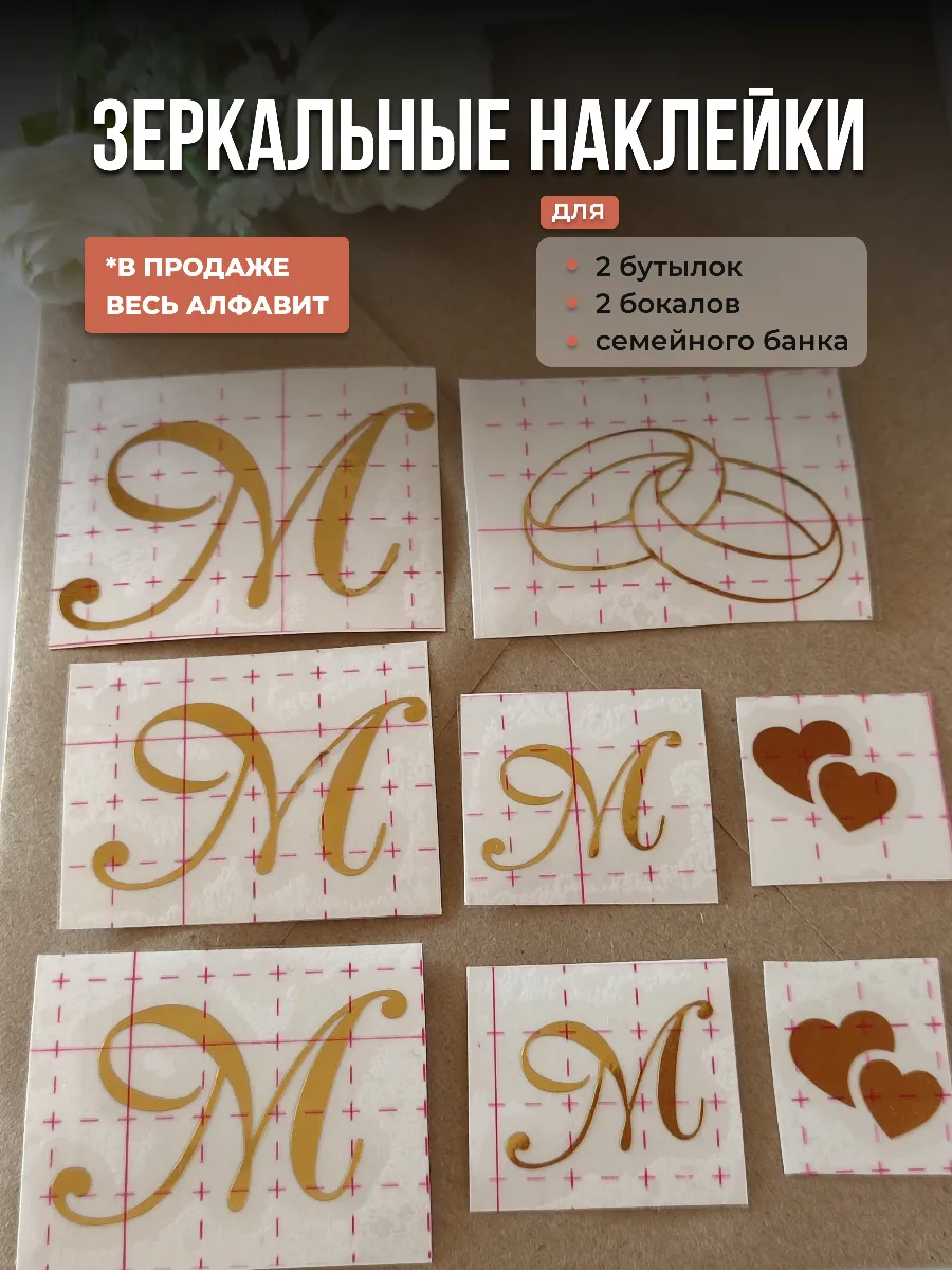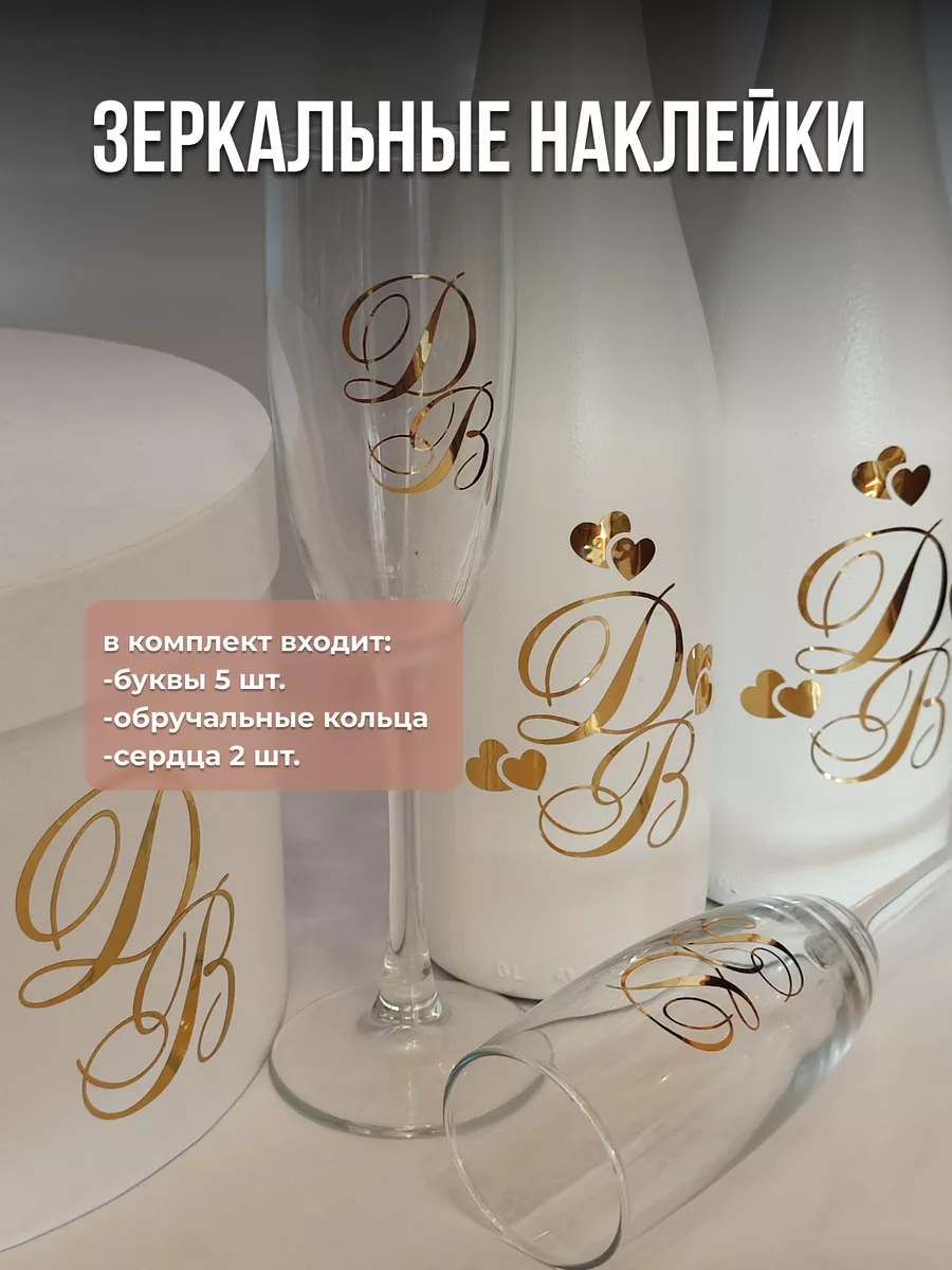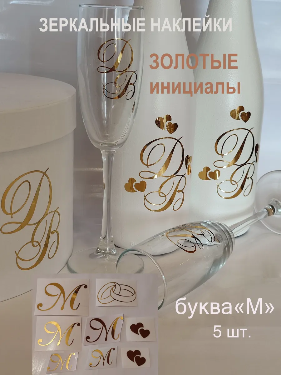 Почему наклейки из зеркального золота инициалы – отличный выбор для украшения бутылок и бокалов? Они добавят изысканности и блеска Вашему мероприятию, придавая ему особую изюминку. Эти наклейки идеально подходят для нанесения на любые бутылки и свадебные фужеры с гладкой поверхностью. Благодаря специальной клеевой основе они легко фиксируются на поверхности. Вы сможете их использовать не только для стеклянной посуды, но и для окрашенных поверхностей, создавая уникальные декорации. Идеальный выбор для свадебных торжеств. Эти декоративные элементы помогут создать особую атмосферу романтики и подчеркнет статус торжества. В наборе 8 штук наклеек, инициалы для свадебной казны, бутылок, фужеров, а также наклейка колец и сердец. Размеры наклеек отлично подходят под стандартные размеры свадебных аксессуаров, благодаря этому вы сможете создать гармоничный и стильный дизайн, соответствующий атмосфере и особенностям Вашего мероприятия. В карточках товаров магазина можно выбрать любые инициалы алфавита. Очистите бутылки от этикеток. Осторожно отделите прозрачную с наклейкой от белой подложки чтобы все элементы остались на прозрачной пленке. Нанесите наклейку на выбранное место, аккуратно разгладьте. Удалите прозрачную пленку. свадебные наклейки на бутылки; наклейки на бокалы; наклейки на шампанское свадебное; шаблоны свадебных наклеек; свадебные наклейки купить; наклейки на свадебные бокалы; наклейки на свадебные бутылки; свадебные наклейки на бутылки шампанского;