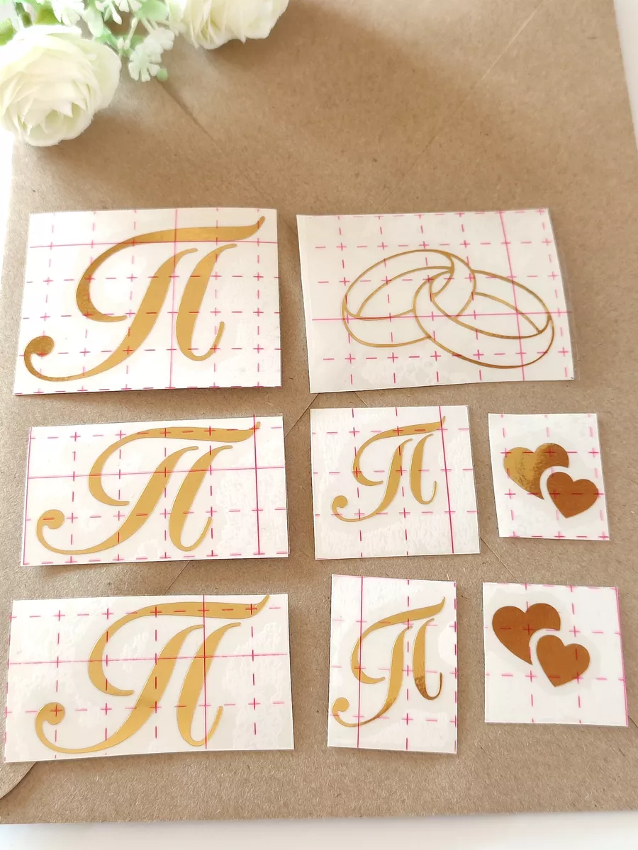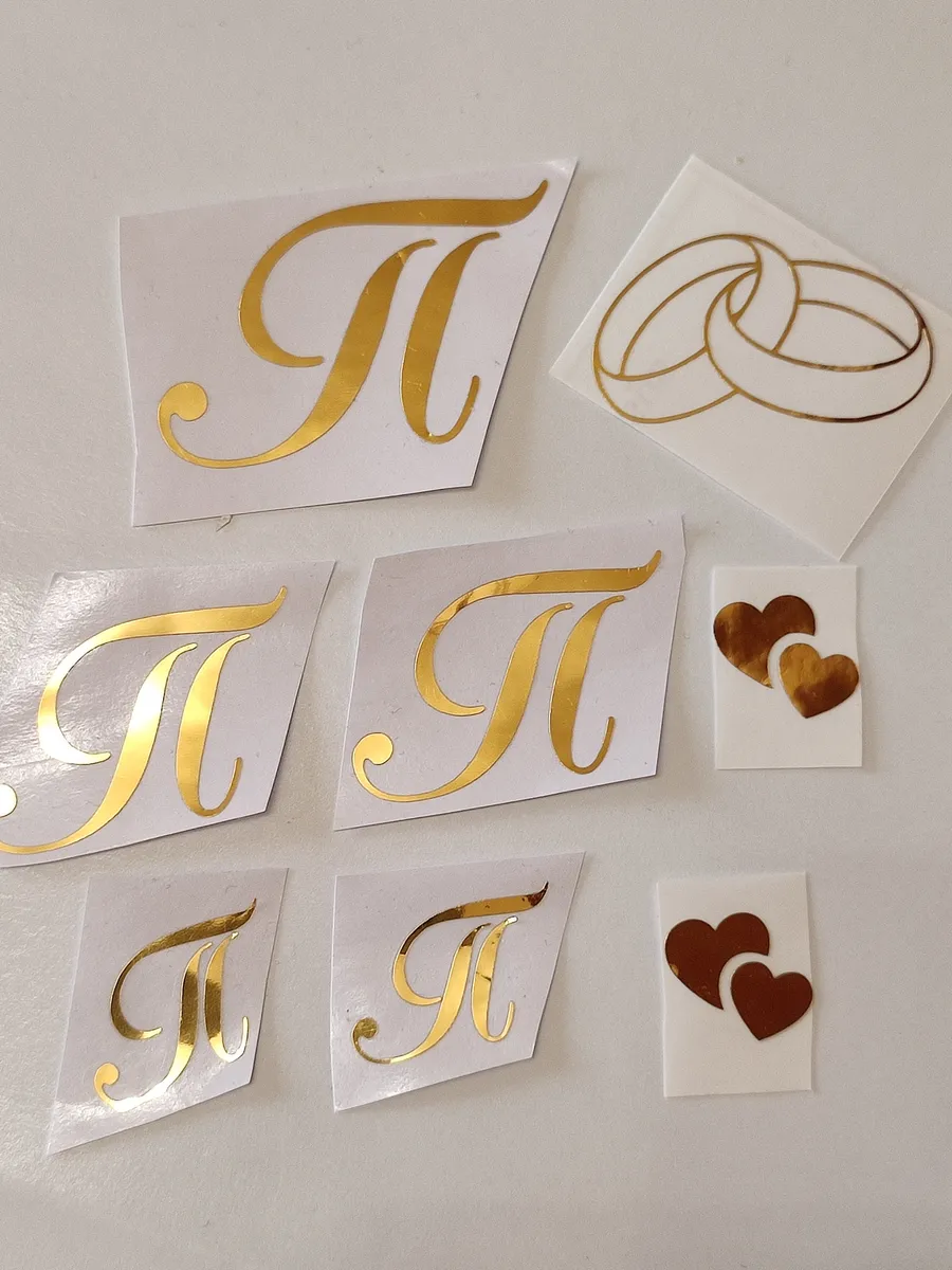 Почему наклейки из зеркального золота инициалы – отличный выбор для украшения бутылок и бокалов? Они добавят изысканности и блеска Вашему мероприятию, придавая ему особую изюминку. Эти наклейки идеально подходят для нанесения на любые бутылки и свадебные фужеры с гладкой поверхностью. Благодаря специальной клеевой основе они легко фиксируются на поверхности. Вы сможете их использовать не только для стеклянной посуды, но и для окрашенных поверхностей, создавая уникальные декорации. Идеальный выбор для свадебных торжеств. Эти декоративные элементы помогут создать особую атмосферу романтики и подчеркнет статус торжества. В наборе 8 штук наклеек, инициалы для свадебной казны, бутылок, фужеров, а также наклейка колец и сердец. Размеры наклеек отлично подходят под стандартные размеры свадебных аксессуаров, благодаря этому вы сможете создать гармоничный и стильный дизайн, соответствующий атмосфере и особенностям Вашего мероприятия. В карточках товаров магазина можно выбрать любые инициалы алфавита. Очистите бутылки от этикеток. Осторожно отделите прозрачную с наклейкой от белой подложки чтобы все элементы остались на прозрачной пленке. Нанесите наклейку на выбранное место, аккуратно разгладьте. Удалите прозрачную пленку. свадебные наклейки на бутылки; наклейки на бокалы; наклейки на шампанское свадебное; шаблоны свадебных наклеек; свадебные наклейки купить; наклейки на свадебные бокалы; наклейки на свадебные бутылки; свадебные наклейки на бутылки шампанского;