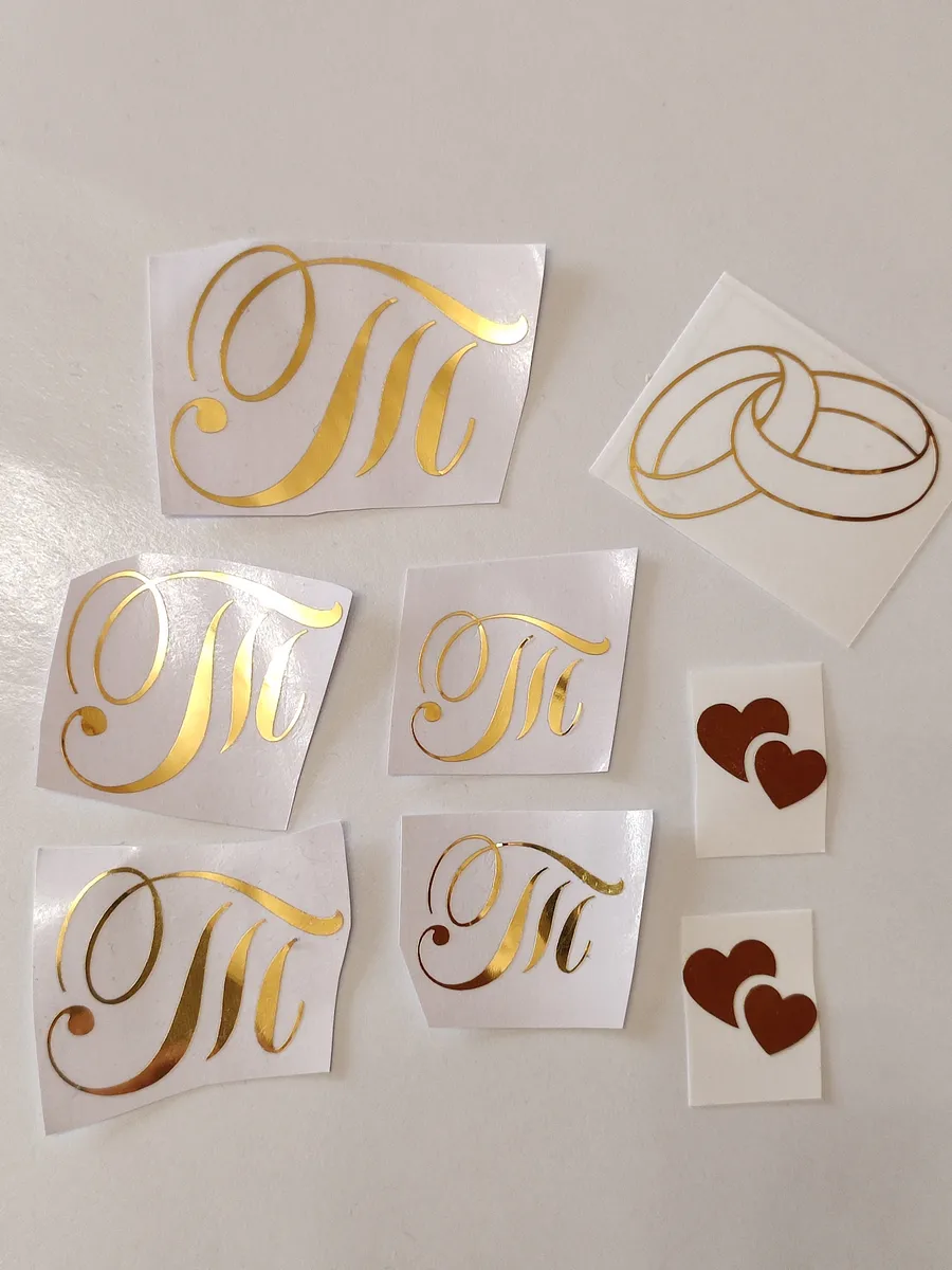 Почему наклейки из зеркального золота инициалы – отличный выбор для украшения бутылок и бокалов? Они добавят изысканности и блеска Вашему мероприятию, придавая ему особую изюминку. Эти наклейки идеально подходят для нанесения на любые бутылки и свадебные фужеры с гладкой поверхностью. Благодаря специальной клеевой основе они легко фиксируются на поверхности. Вы сможете их использовать не только для стеклянной посуды, но и для окрашенных поверхностей, создавая уникальные декорации. Идеальный выбор для свадебных торжеств. Эти декоративные элементы помогут создать особую атмосферу романтики и подчеркнет статус торжества. В наборе 8 штук наклеек, инициалы для свадебной казны, бутылок, фужеров, а также наклейка колец и сердец. Размеры наклеек отлично подходят под стандартные размеры свадебных аксессуаров, благодаря этому вы сможете создать гармоничный и стильный дизайн, соответствующий атмосфере и особенностям Вашего мероприятия. В карточках товаров магазина можно выбрать любые инициалы алфавита. Очистите бутылки от этикеток. Осторожно отделите прозрачную с наклейкой от белой подложки чтобы все элементы остались на прозрачной пленке. Нанесите наклейку на выбранное место, аккуратно разгладьте. Удалите прозрачную пленку. свадебные наклейки на бутылки; наклейки на бокалы; наклейки на шампанское свадебное; шаблоны свадебных наклеек; свадебные наклейки купить; наклейки на свадебные бокалы; наклейки на свадебные бутылки; свадебные наклейки на бутылки шампанского;