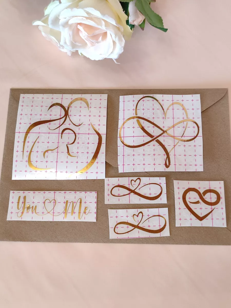 Свадебные наклейки из зеркального золота идеально подойдут для украшения свадебных аксессуаров из-за различных надписей и изображений, таких как символ бесконечности с сердцем, изображение семьи с ребенком. Эти декоративные элементы помогут создать особую атмосферу романтики и подчеркнет статус торжества. В наборе 6 штук наклеек, что позволит Вам выбирать из разнообразных вариантов украшений для свадебных аксессуаров. Благодаря этому вы сможете создать гармоничный и стильный дизайн, соответствующий атмосфере и особенностям Вашего мероприятия.