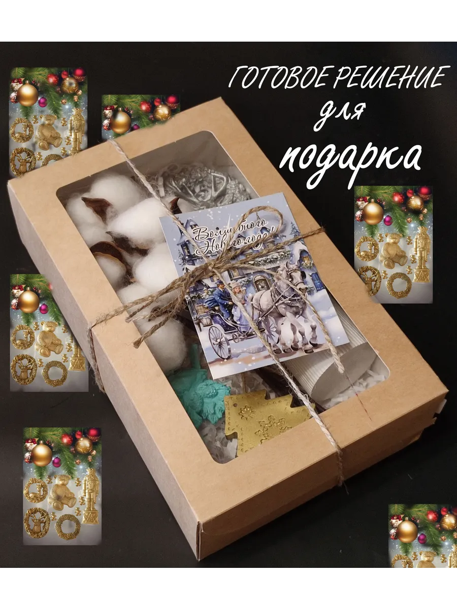 Набор на Новый год упакован в подарочную коробку.