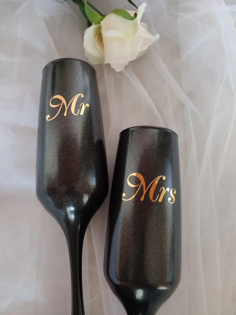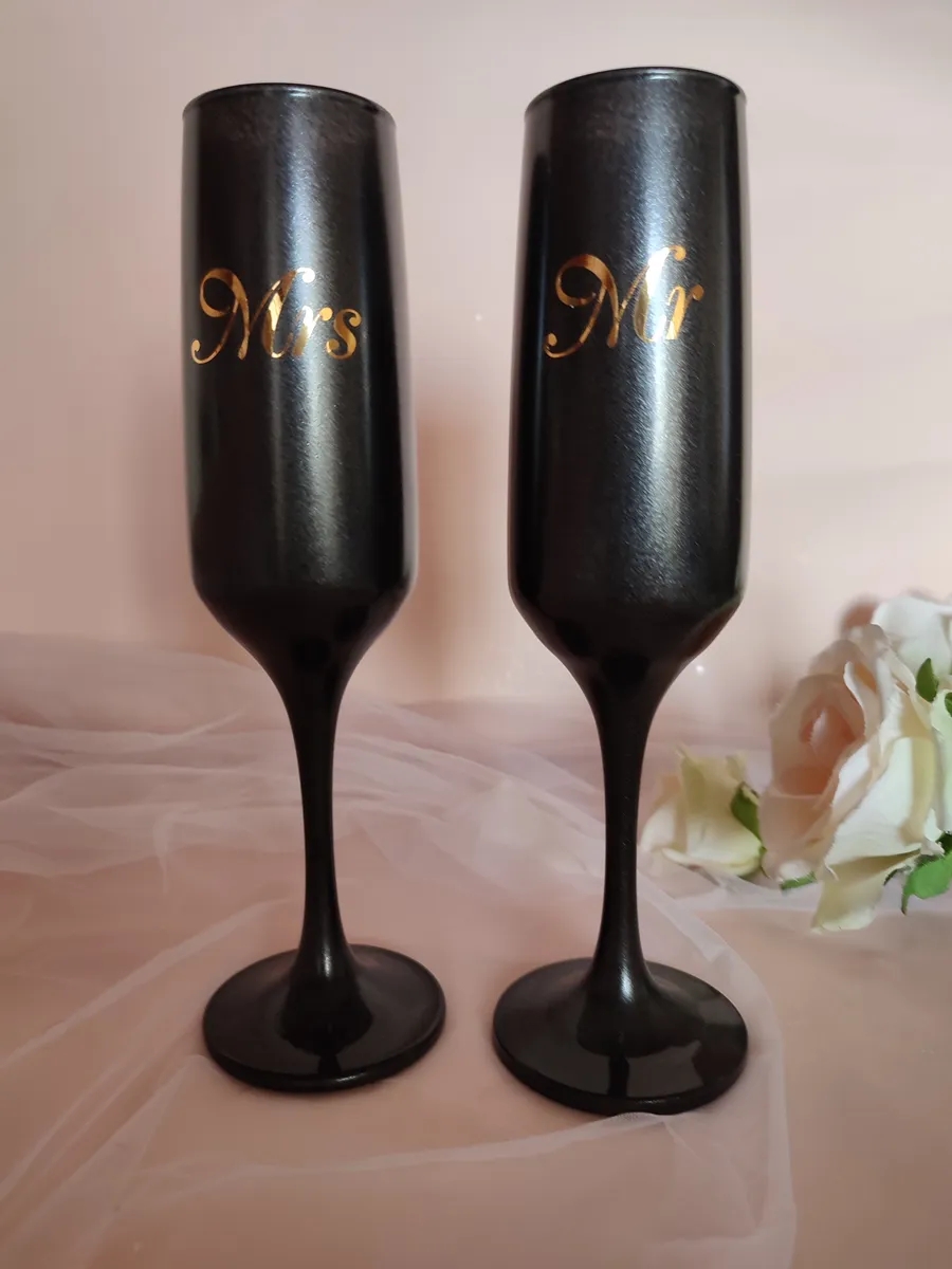 Свадебные бокалы Mr. Mrs ручной работы - это не просто предмет сервировки стола, это символ любви и счастья молодой пары. Их стиль, форма и утонченность делают их идеальным выбором для особого дня. Пусть эти бокалы станут неотъемлемой частью вашего свадебного торжества, напоминая о важности каждого момента вашей совместной жизни.