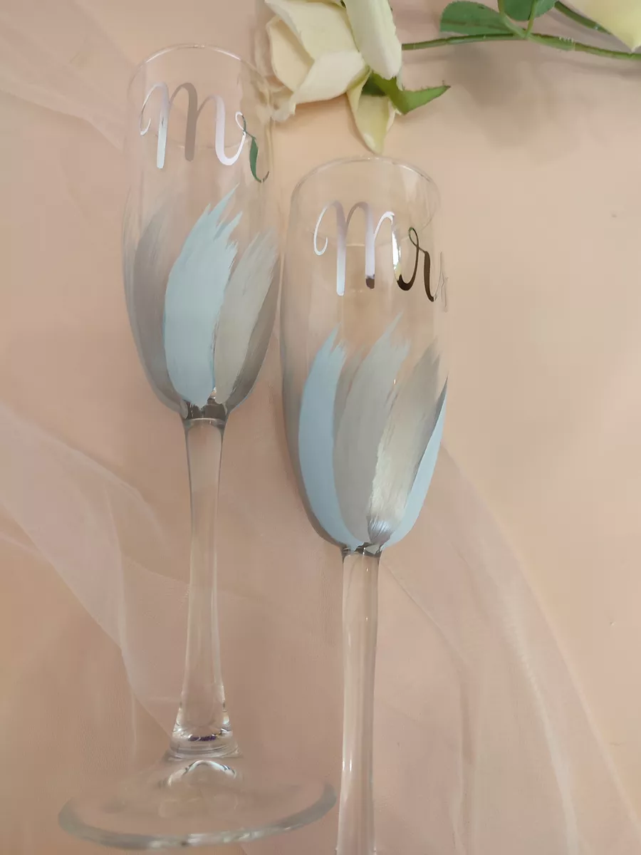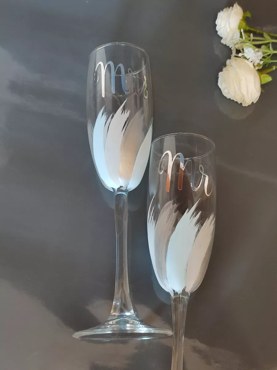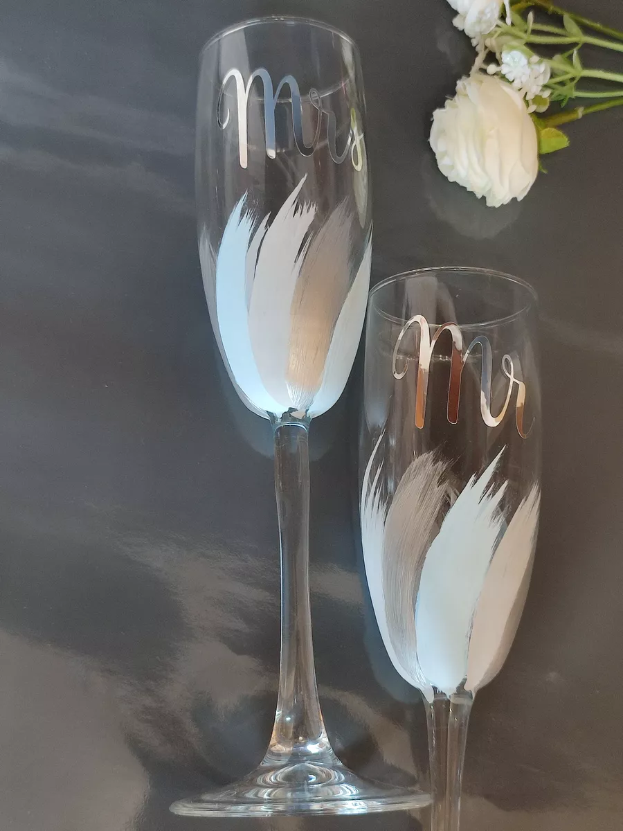Свадебные бокалы Mr. Mrs ручной работы - это не просто предмет сервировки стола, это символ любви и счастья молодой пары. Их стиль, форма и утонченность делают их идеальным выбором для особого дня. Пусть эти бокалы станут неотъемлемой частью вашего свадебного торжества, напоминая о важности каждого момента вашей совместной жизни.